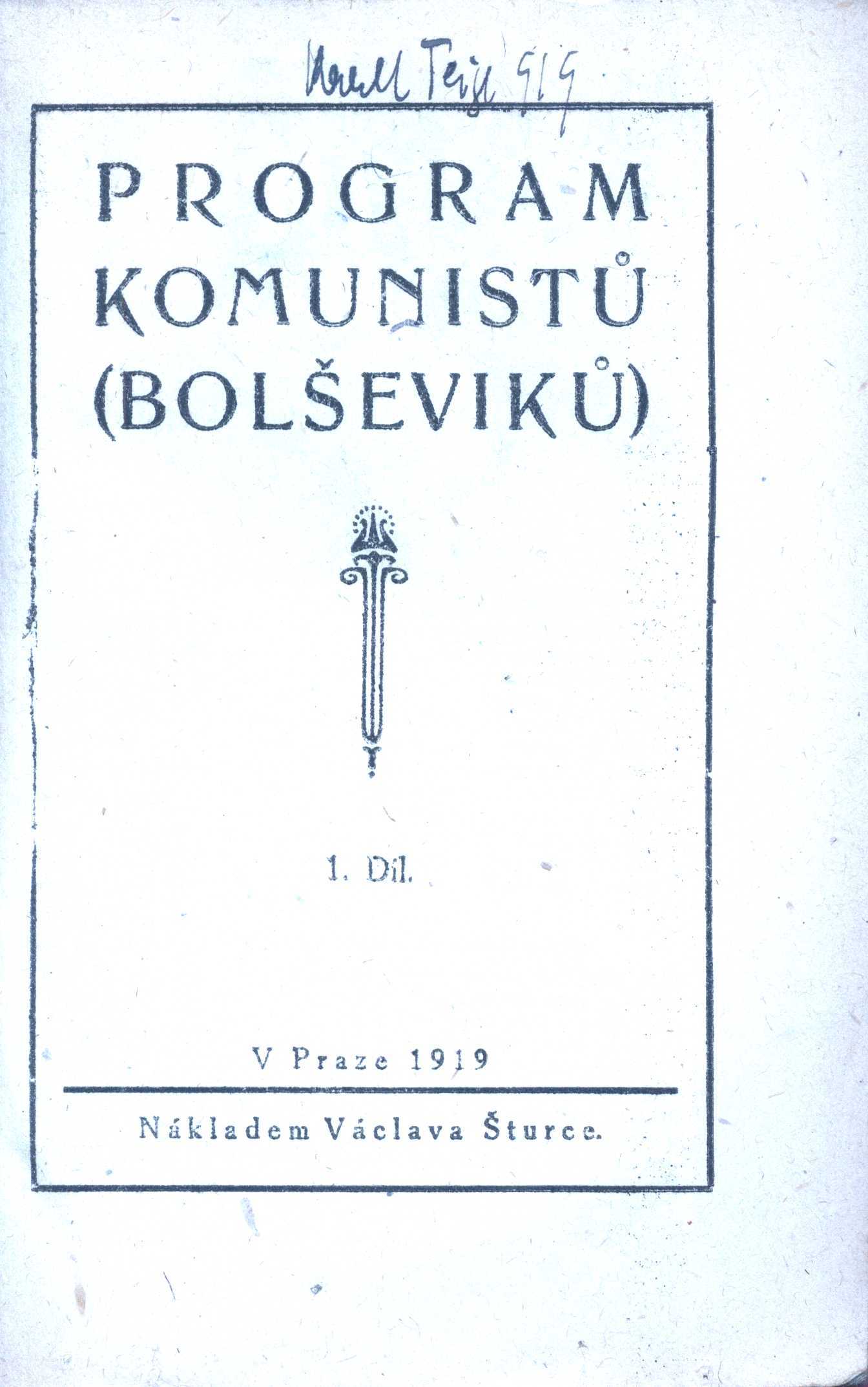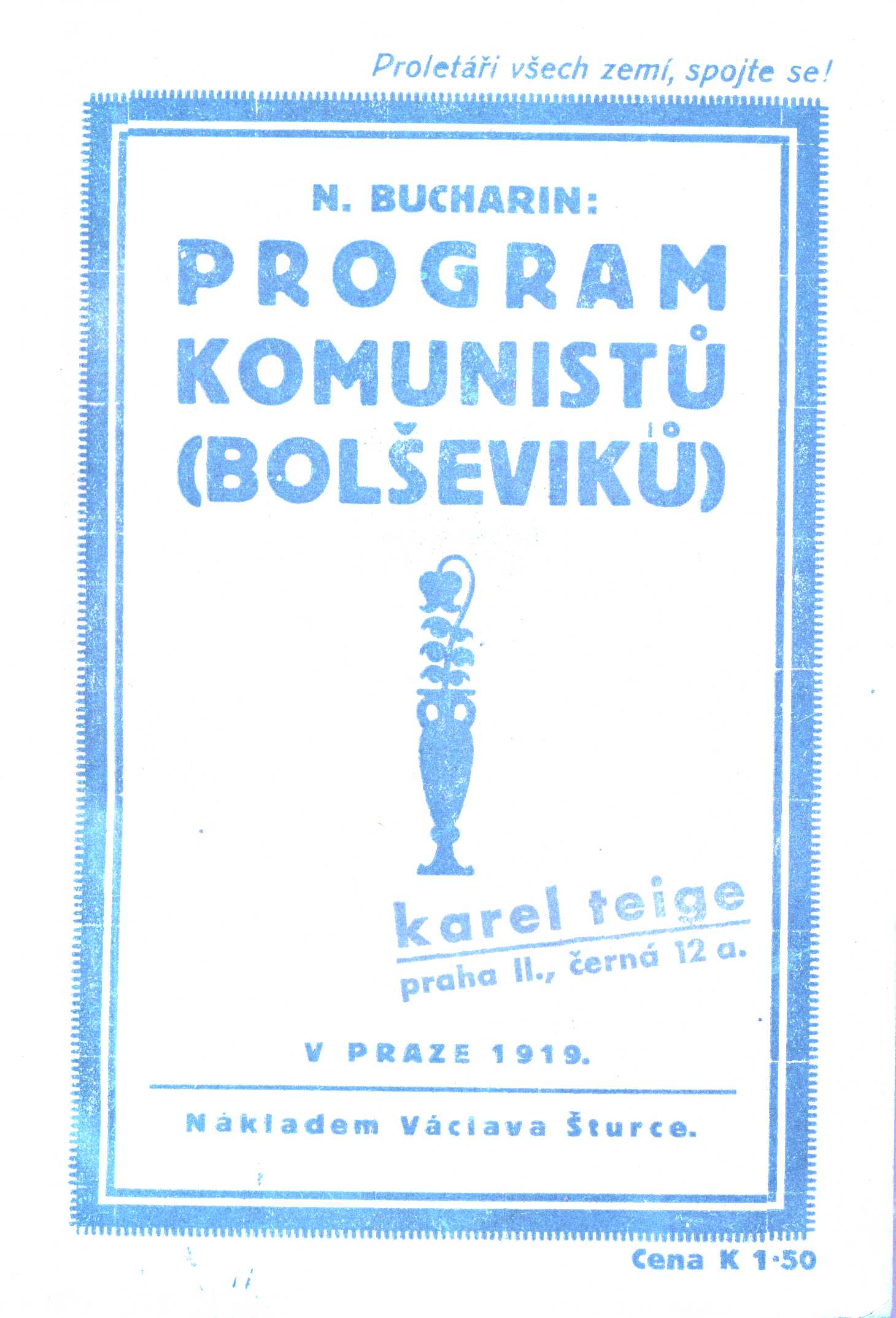 Title information Program komunistů (bolševiků) / N. Bucharin. 1. díl Personal name Bucharin, Nikolaj Ivanovič, 1888-1938 (Author) Publication Praha : Václav Šturc, 1919 Scope 95 s. ISBN brož. Country Czech Republic Language Czech Language of the original Russian Note Obálka. - Závěr překladatele. - Na zadní straně obálky nakladatelská upoutávka.