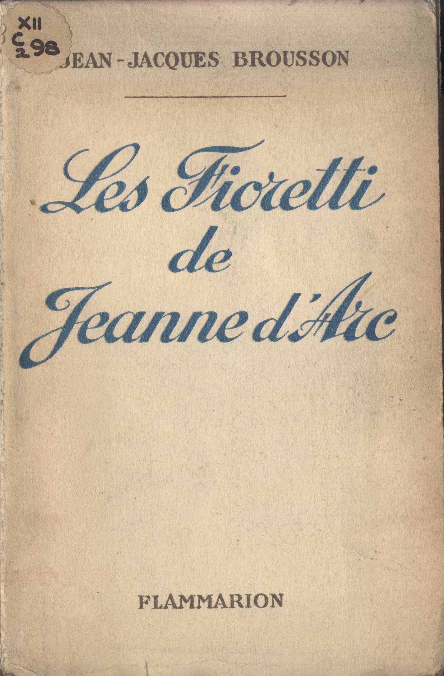 Title information Les Fioretti de Jeanne d'Arc / Jean-Jacques Brousson Personal name Brousson, Jean-Jacques, 1878-1958 (Author) Další autoři Ernest Flammarion (firma) (Publisher) Emmanuel Grevin (Lagny-sur-Marne, Francie) (Printer) Publication Paris : Ernest Flammarion, [c1932] Manufacture E. Grevin) Scope 248 s. ISBN brož. Country France Language French Note Typograficky řešená, modře a černě tištěná obálka. - V rámci nákladu deset výtisků na hollandu (číslovaných 1-10) a 50 na "papier pur fil Outhenin Chalandre" (číslovaných 11-60).
