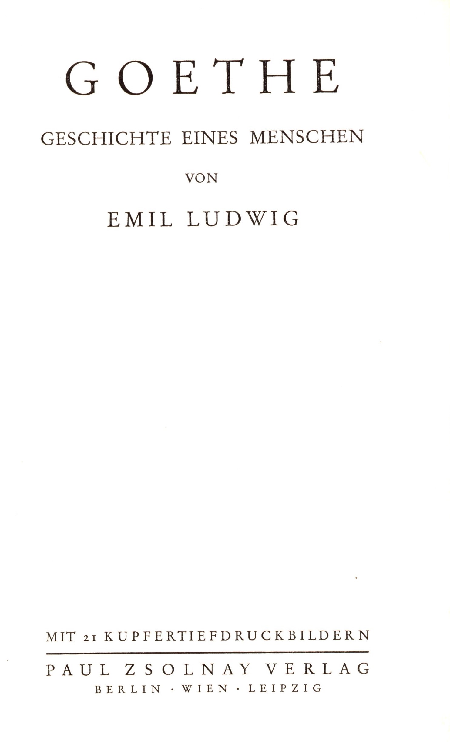 Title information Goethe : Geschichte eines Menschen : mit 21 Kupfertiefdruckbildern / von Emil Ludwig ; Einbandentwurf von Rudolf Geyer Personal name Ludwig, Emil, 1881-1948 (Author) Další autoři Geyer, Rudolf, 1897-1979 (Binding designer) Corporation Paul Zsolnay Verlag (Publisher) Wiener Kunstdruck A. G. (Printer of plates) Elbemühl A.G. (Vídeň (Rakousko)) (Printer) Edition statement Ungekürzte Sonderausgabe Publication Berlin ; Wien ; Leipzig : Paul Zsolnay Verlag, [1931] Manufacture Wien : Elbemühl Copyright notice date ©1931 Scope 743 stran, xxiv stran obrazové přílohy : ilustrace ; 22 cm ISBN (vázáno) Country Germany Language German Note Celoplátěná vazba zdobená (Rudolf Geyer). - Předmluva autora. - Dvacet čtyři stran obrazové přílohy s fotografiemi a reprodukcemi portrétů a dalšími snímky a s faksimile rukopisu. - Informace o dalších dílech autora. - Rejstřík. - Bibliografické údaje. - Seznam vyobrazení. - Časová tabulka.