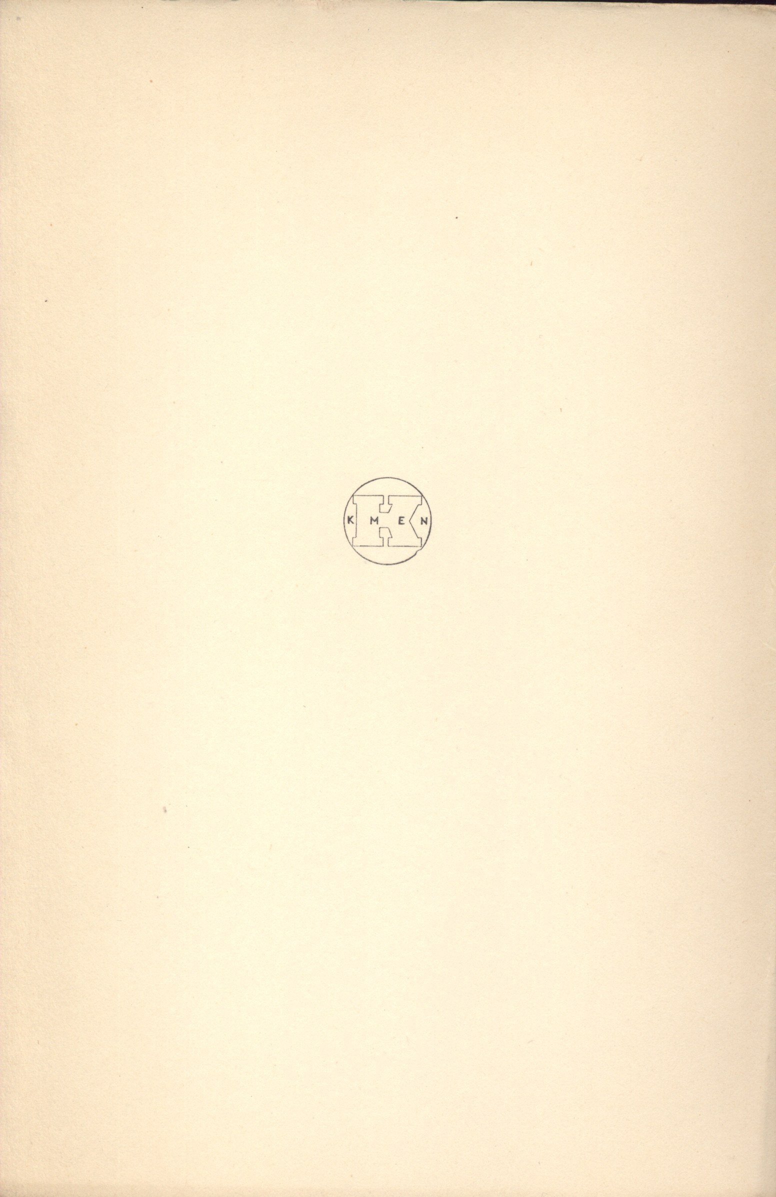 Document kind monografie Keywords česká literatura * poezie * básně UDC 821.162.3 * 82-1 Uživatelské pole PNP U sign. C12b 14958 (brožovaný výtisk) typizovaná obálka (J. Šváb) se značkou edice. - Patitul a ediční značka. - Titulní list. - Obsah. - Edice nad tiráží se značkou Kmene (J. Kaplický - neuvedeno), která se opakuje i na zadní straně obálky. - Ochranná papírová obálka z průsvitky. Sign. C12b 14958 dar Sokol Liboc. Tiráž: "Erb. Sbírka poesie. Svazek 4. Rediguje Kamil Bednář. Klement Bochořák: Jasy. Obálka a úprava Jaroslava Švába. Vytiskla „Osvěta“, společnost s o. r. ve Valašském Meziříčí, pro nakladatele Václava Petra v Praze II., Ječná 32, roku 1940." Rozsah: 47, [5] s. Rozměr: 20,4 cm Call number Track No. Location Info C12b 14958 1917/2013 Sbírka