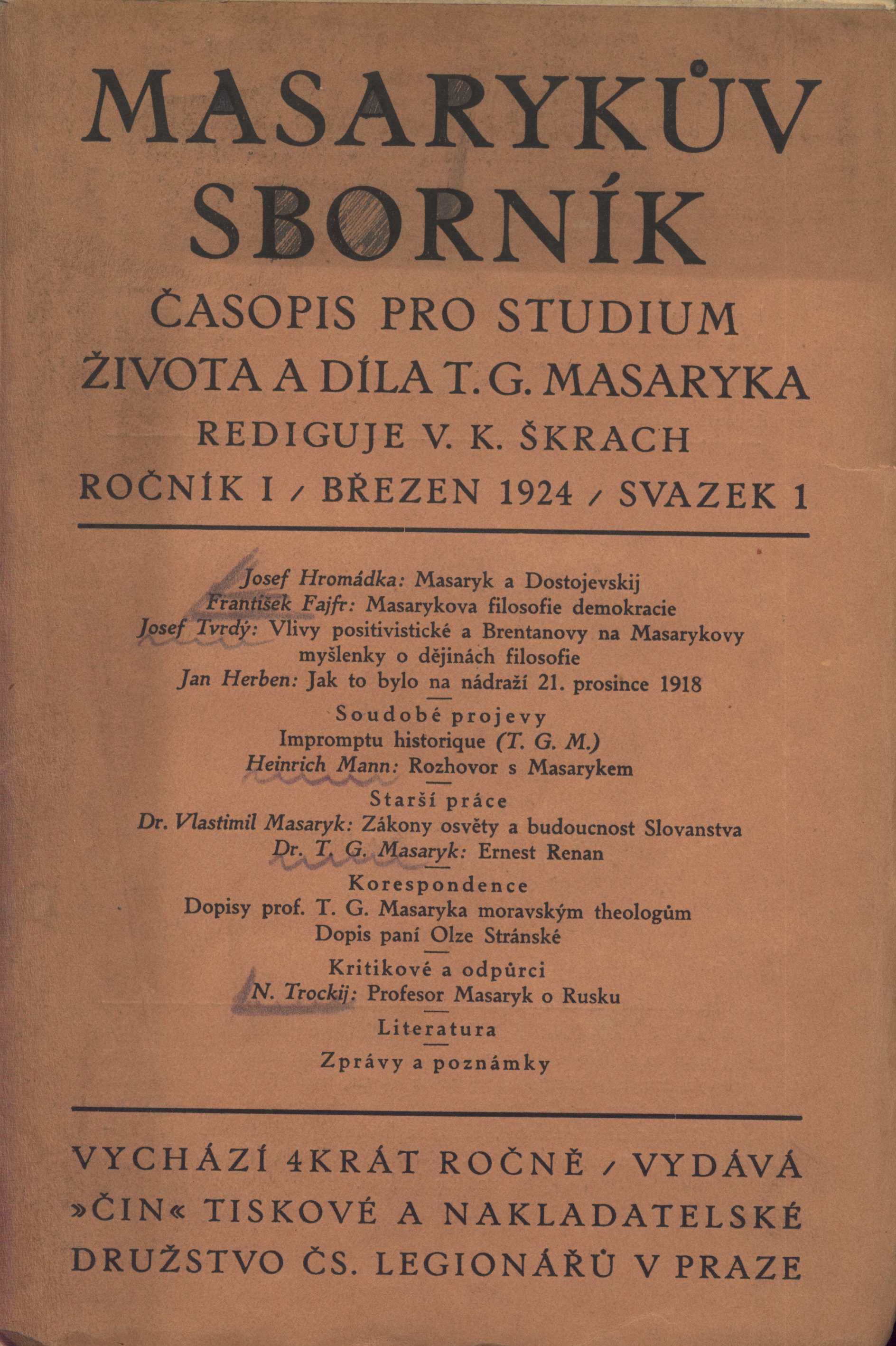 Title information Masarykův sborník : časopis pro studium života a díla T.G. Masaryka Další autoři Škrach, Vasil Kaprálek, 1891-1943 (Editor) Corporation Čin - tiskové a nakladatelské družstvo československých legionářů (Publisher) Grafia (tiskárna, nakladatelství) (prt (tiskárna)) Roč., číslo ročník 1, svazek 1, 4, 1924/1925 Publication V Praze : Čin, 1924-1925 Scope il., faksim. 370 s. ISSN 1801-6286 Country Czech Republic Language Czech Note Čb. fotografie, portréty a faksimile. - Stránkováno průběžně.