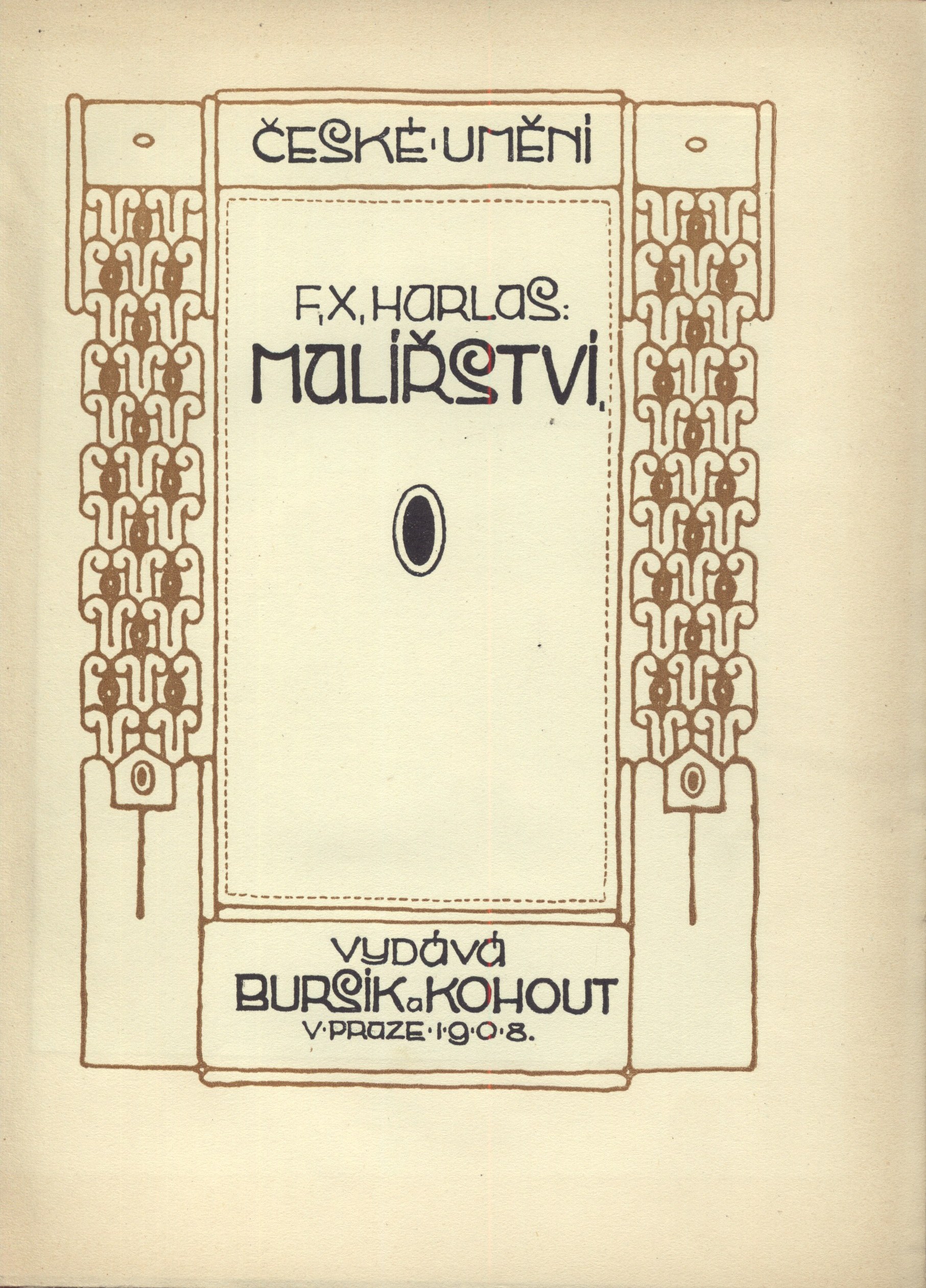 Title information Malířství / F. X. Harlas Personal name Harlas, František Xaver, 1865-1947 (Author) Další autoři Bursík a Kohout (nakladatelství, knihkupectví) (Publisher) Alois Wiesner, knihtiskař České akademie císaře Františka Josefa pro vědy, slovesnost a umění (Praha) (Printer) Publication Praha : Bursík a Kohout, 1908 Scope 207 stran, 28 nečíslovaných listů obrazových příloh : ilustrace ; 23 cm ISBN (vázáno) Edition České umění [sv. 1]