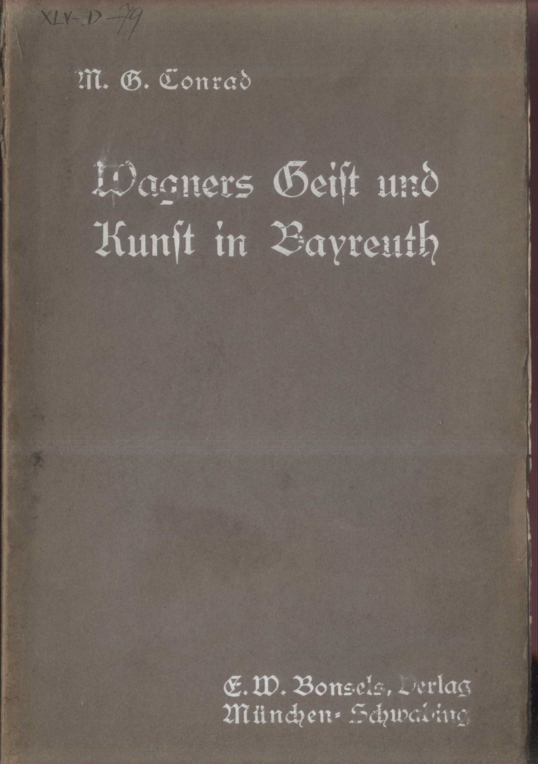 Názvové údaje Wagners Geist und Kunst in Bayreuth : Reinertrag zum Besten des Bayreuther Stipendienfonds / Michael Georg Conrad Osobní jméno Conrad, Michael Georg, 1846-1927 (Autor) Další autoři Karásek ze Lvovic, Jiří, 1871-1951 (Autor podpisu) Korp. E. W. Bonsels (nakladatelství) (Nakladatel, vydavatel) (Tiskař) Nakladatel München-Schwabing : E. W. Bonsels, 1906 Rozsah 99 s. ISBN brož. Země vyd. Německo Jazyk dok. němčina Poznámky Typograficky řešená obálka. - Sazba gotikou. - Náklad 1000 výtisků.