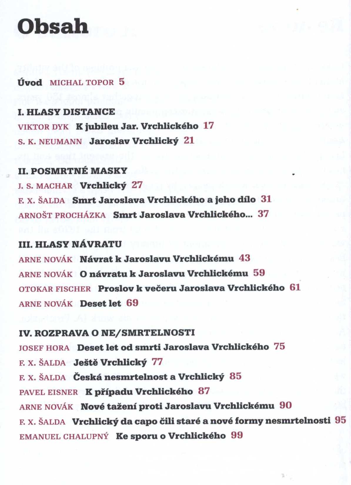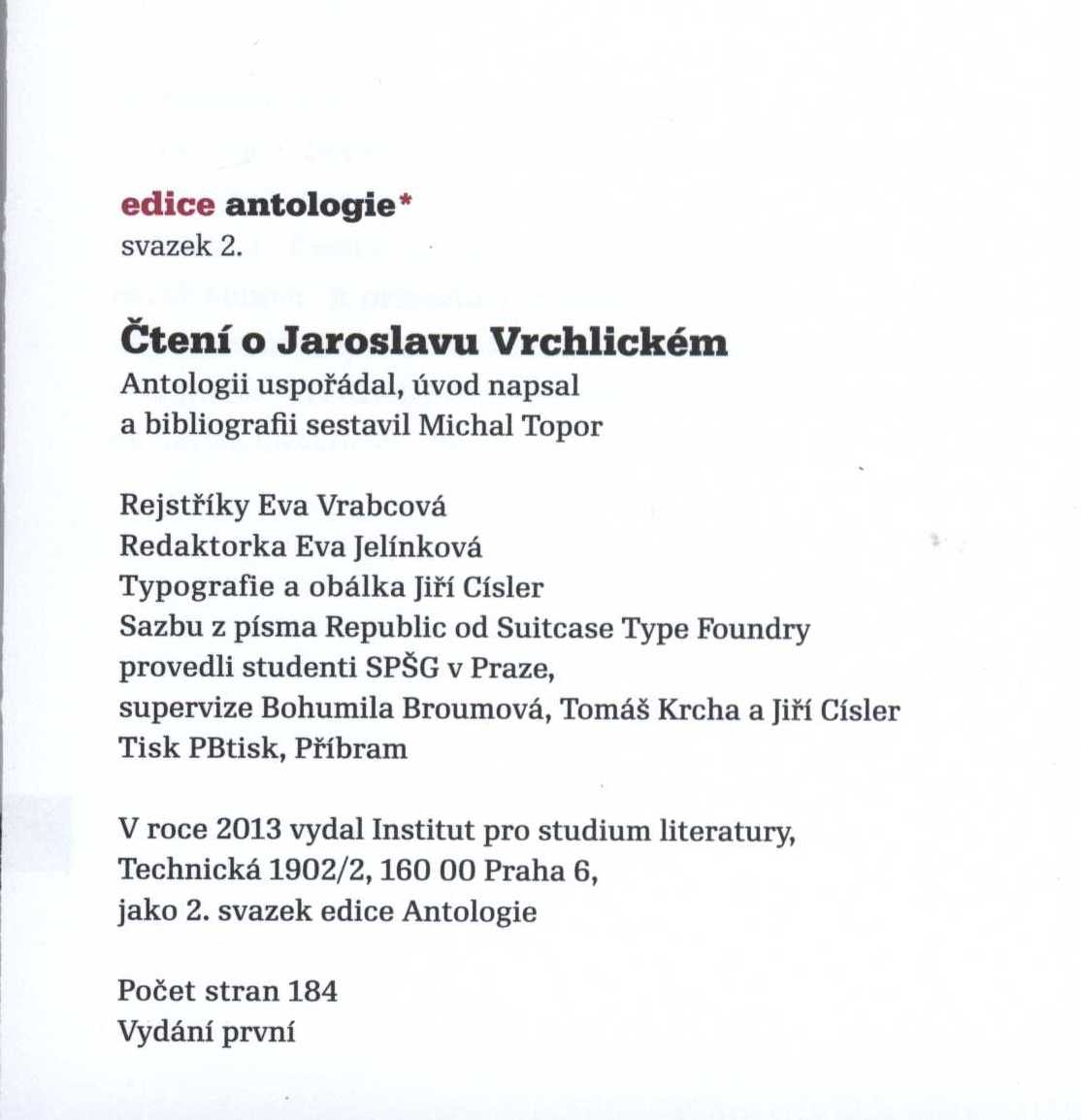 Note Typografická obálka. - Na záložkách obálky poznámka o knize a J. Vrchlickém. - Frontispis. - Úvod. - Černobílé kresby a fotografie s popiskami. - Krátké bio-bibliografické poznámky o autorech příspěvků. - Obsahuje bibliografii, bibliografické odkazy a rejstříky. - Poznámka o editorovi. - Anglické resumé. - Obsah.