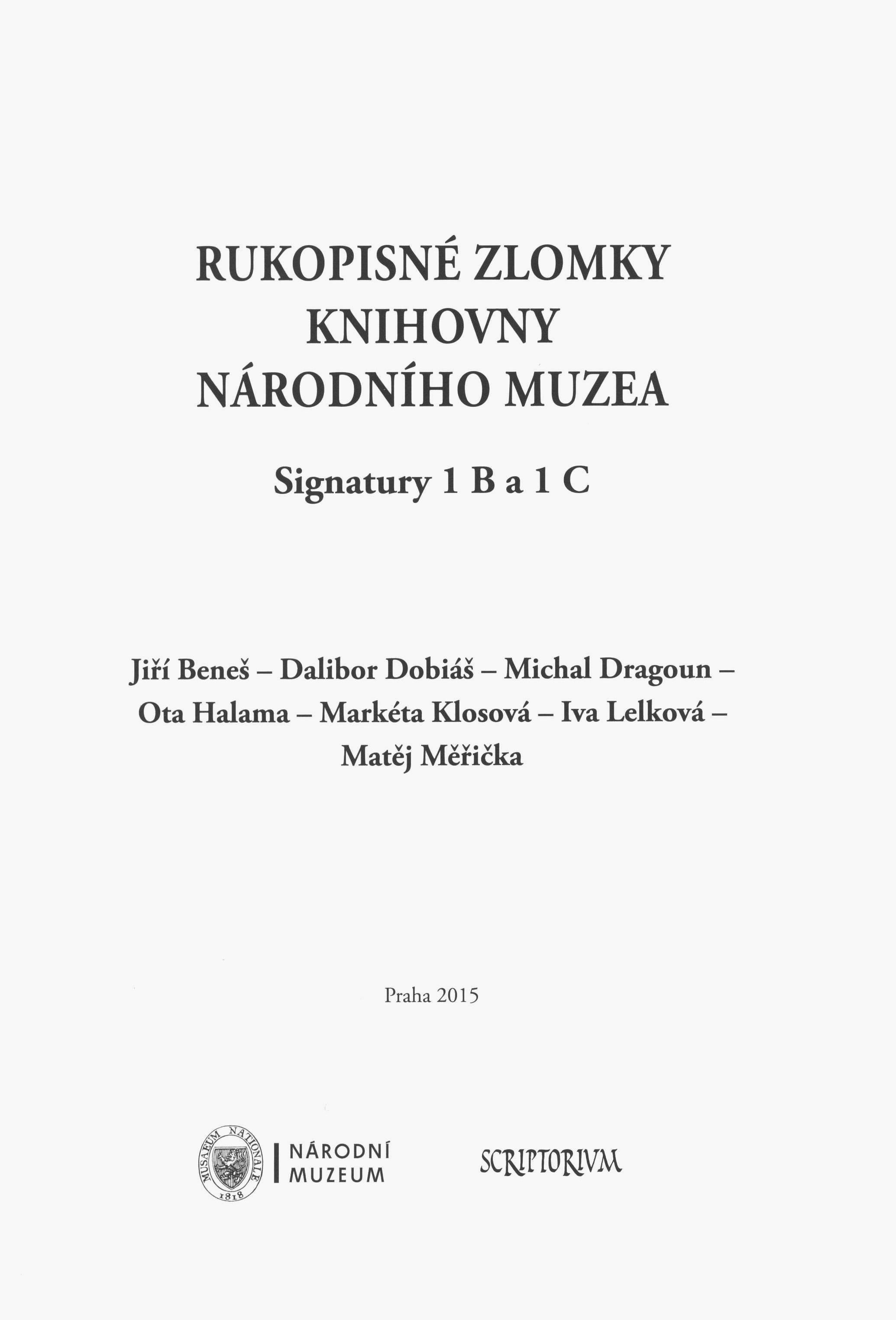 1. Title informationRukopisné zlomky Knihovny Národního muzea : signatury 1 B a 1 C / Jiří Beneš ... [et al.] ; [obálka Jana Ratajová, Tomáš Rataj ; grafická úprava a předtisková příprava Tomáš Rataj]