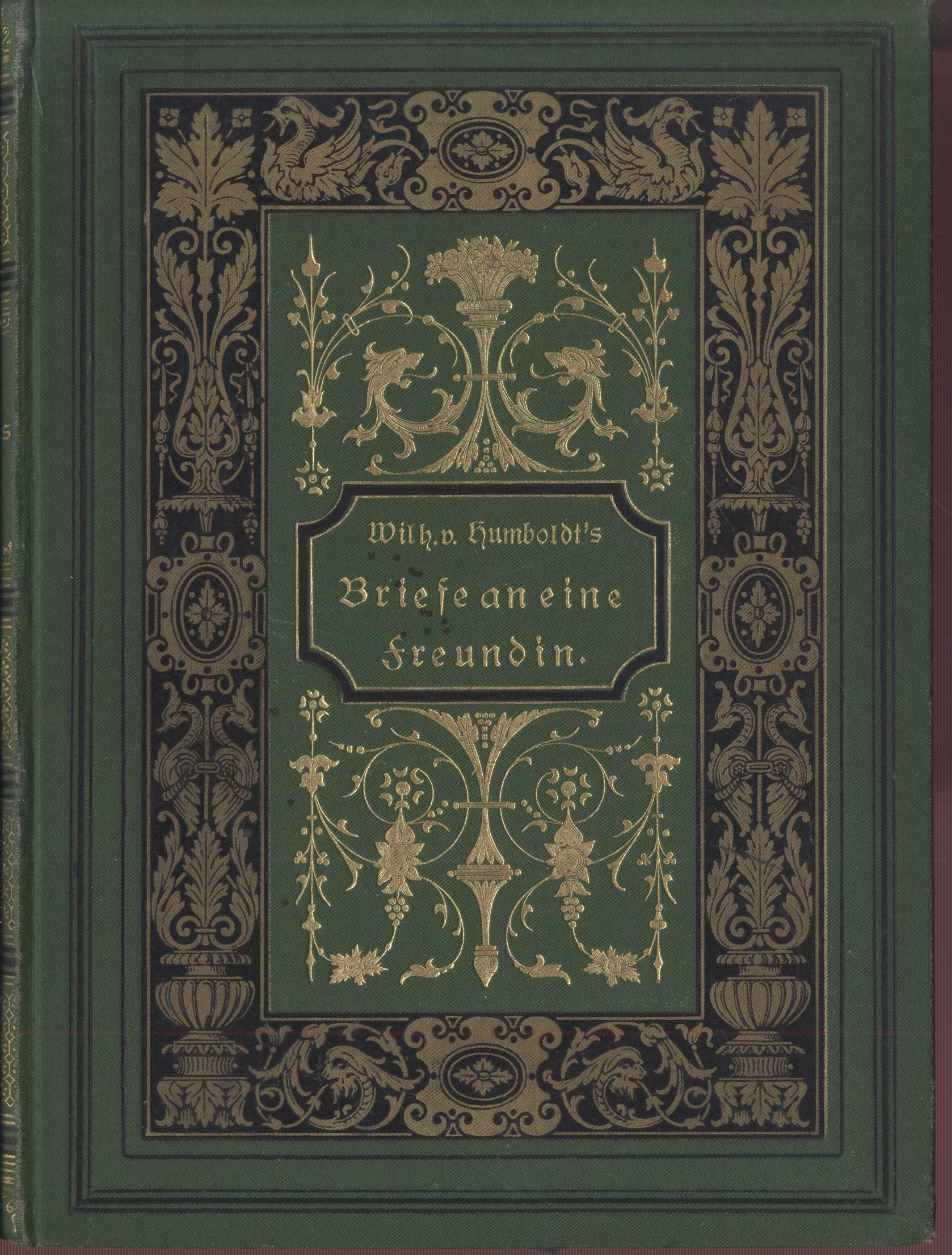 Title information Wilh. v. Humboldt's Briefe an eine Freundin / mit einer Einleitung versehen von Fr. v. Hohenhausen Personal name Humboldt, Wilhelm von, 1767-1835 (Author) Další autoři Blaschka, Maria (Former owner) (Inscriber) Corporation Verlag von Siegfried Cronbach (nakladatelství) (Publisher) Kerskes & Hohmann (tiskárna) (Printer) Publication Berlin : Verlag von Siegfried Cronbach, 1881 Manufacture (Kerskes & Hohmann) Scope xxix, 416 s. ISBN (váz.) Country Germany Language German Note Zdobená celoplátěná vazba. - Úvod Fr. von Hohenhausen.