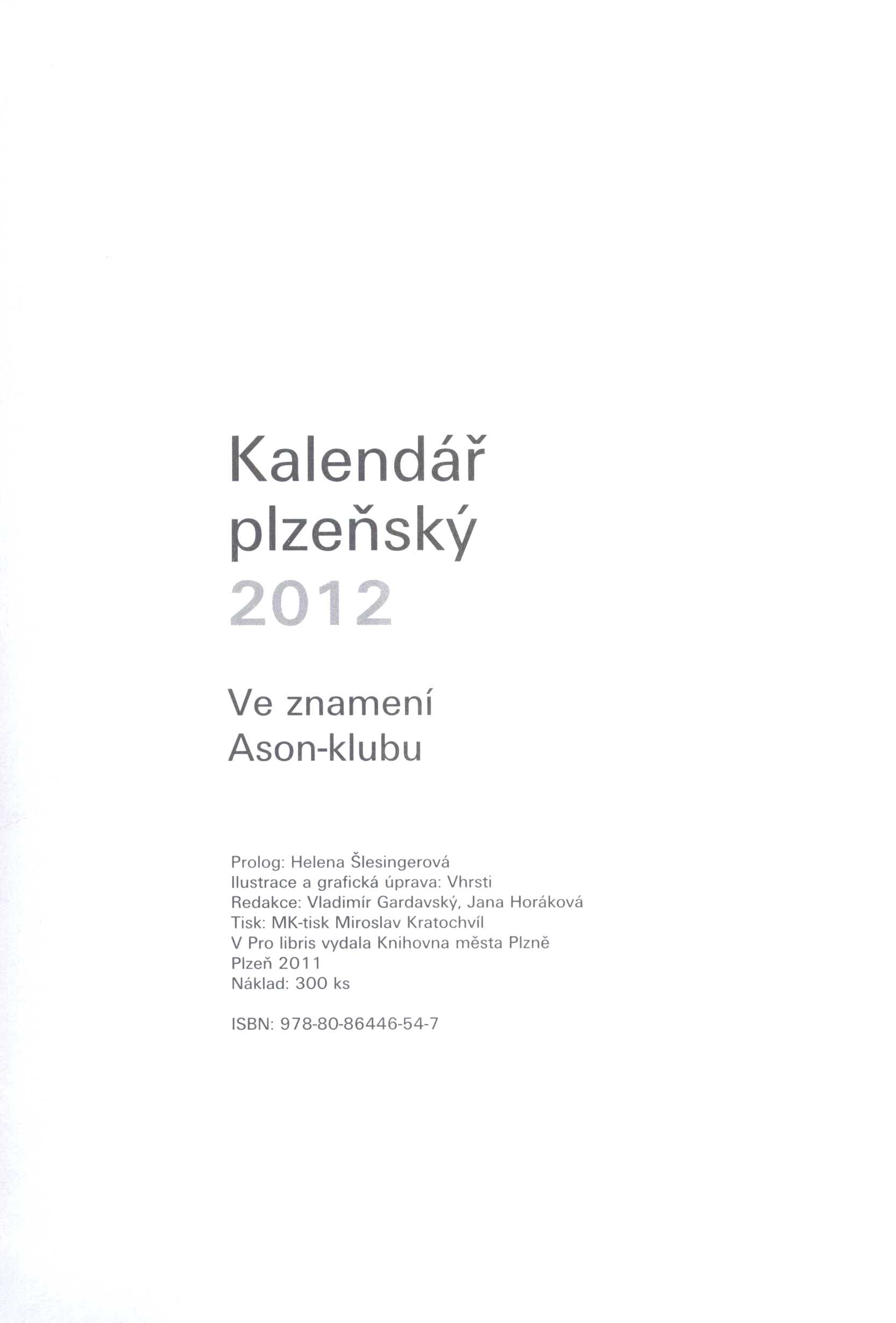 $a Kalendář plzeňský 2012 : $b kratochvilné čtení na každý měsíc. $p Ve znamení Ason-klubu 246 13