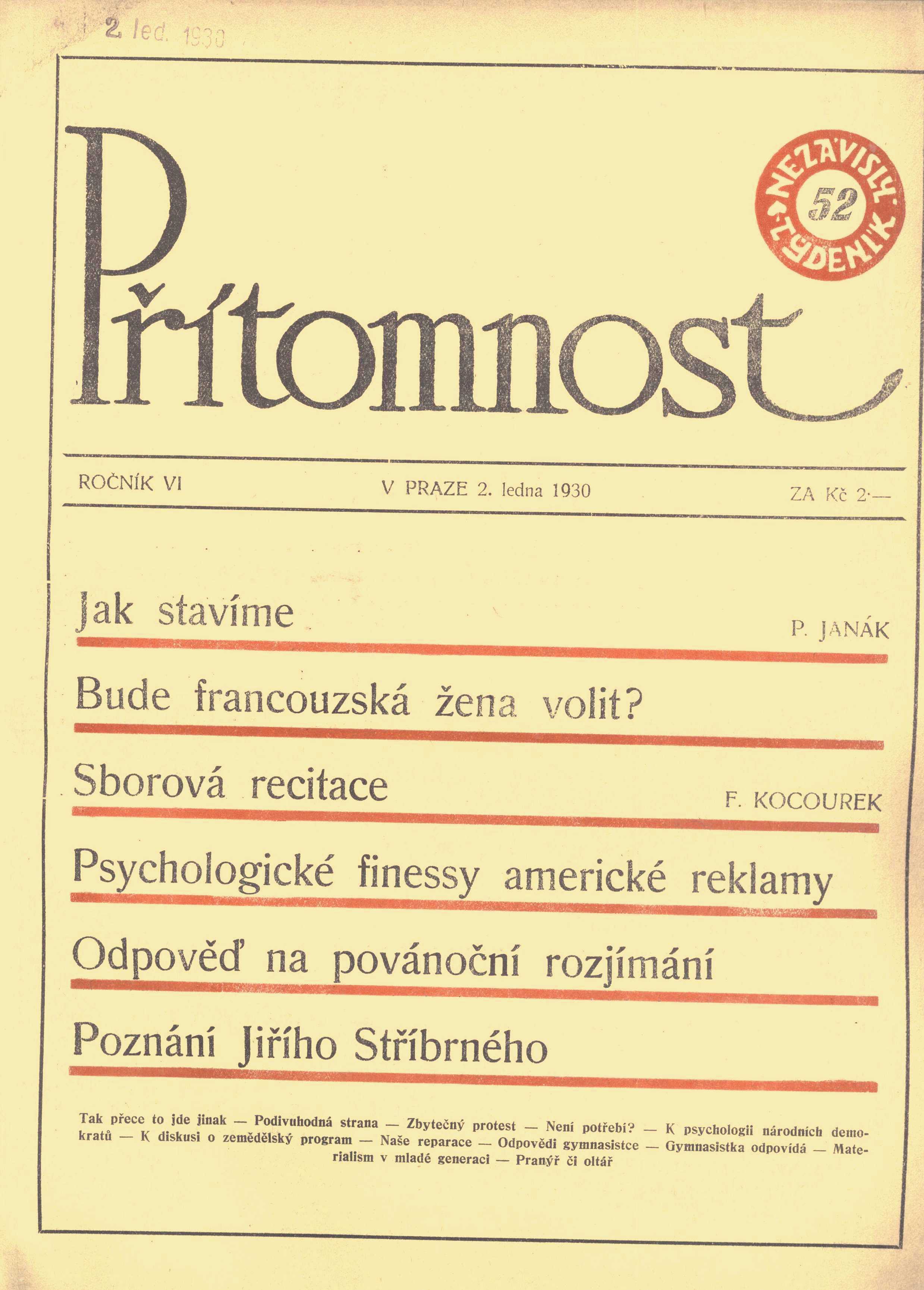 1-52 (dvojčíslo 43-44; 10. ledna 1929 - 2. ledna 1930)