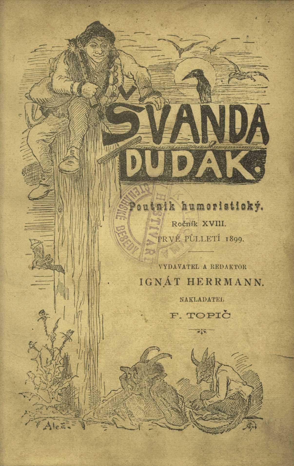Švanda dudák : poutník humoristický. -- Ročník 18, 1. půlletí, číslo 1-6 (1899). -- Praha : F. Topič, 1899. -- Tiskl Alois Wiesner. -- 260 stran : ilustrace ; 19 cm. -- Čb. ilustrované záhlaví stejné u každého čísla. - Čb. ilustrace. -- Vydavatel a redaktor Ignát Herrmann. -- Summary: (hbvb). -- Summary: Významný český humoristický časopis redigovaný Ignátem Herrmannem. Obsahoval drobné humoristické prózy a poezii. - (kkper). -- 1, 2, 3, 4, 5, 6 (leden - červen 1899). -- Nakladatel F. Topič.