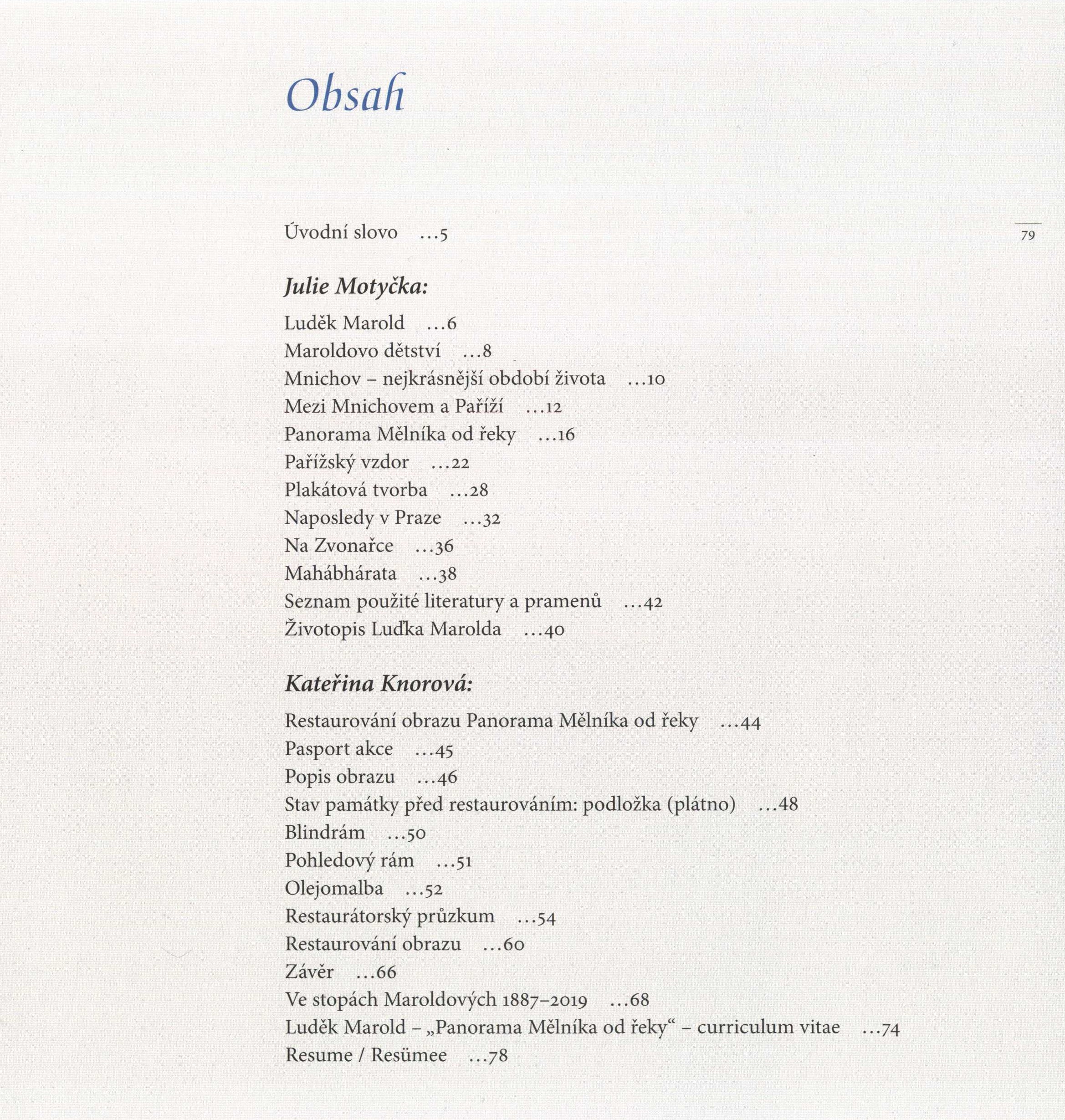 Note Barevná reprodukce obrazu na přední straně vazby, šedý text (i na hřbetu), faksimile podpisu L. Marolda. - Černobílé fotografie na předních i zadních předsádkách. - Barevná reprodukce obrazu na vakátě. - Frontispis (barevná reprodukce obrazu). - Dvoubarevný text na titulním listu. - Barevná fotografie. - Úvodní slovo starosty Mělníka C. Mikeše, barevný znak města. - Texty. - Tónované a barevné fotografie, reprodukce, faksimile s popisky. - Životopis L. Marolda. - Restaurování obrazu (popis akce). - barevné a černobílé fotografie, reprodukce, obrázky spopisky. - Závěr K. Knorové. - Poděkování. - Životopisná data L. Marolda. - Barevné fotografie a reprodukce. - Obsah. - Loga institucí. - Barevná reprodukce na zadní straně vazby.