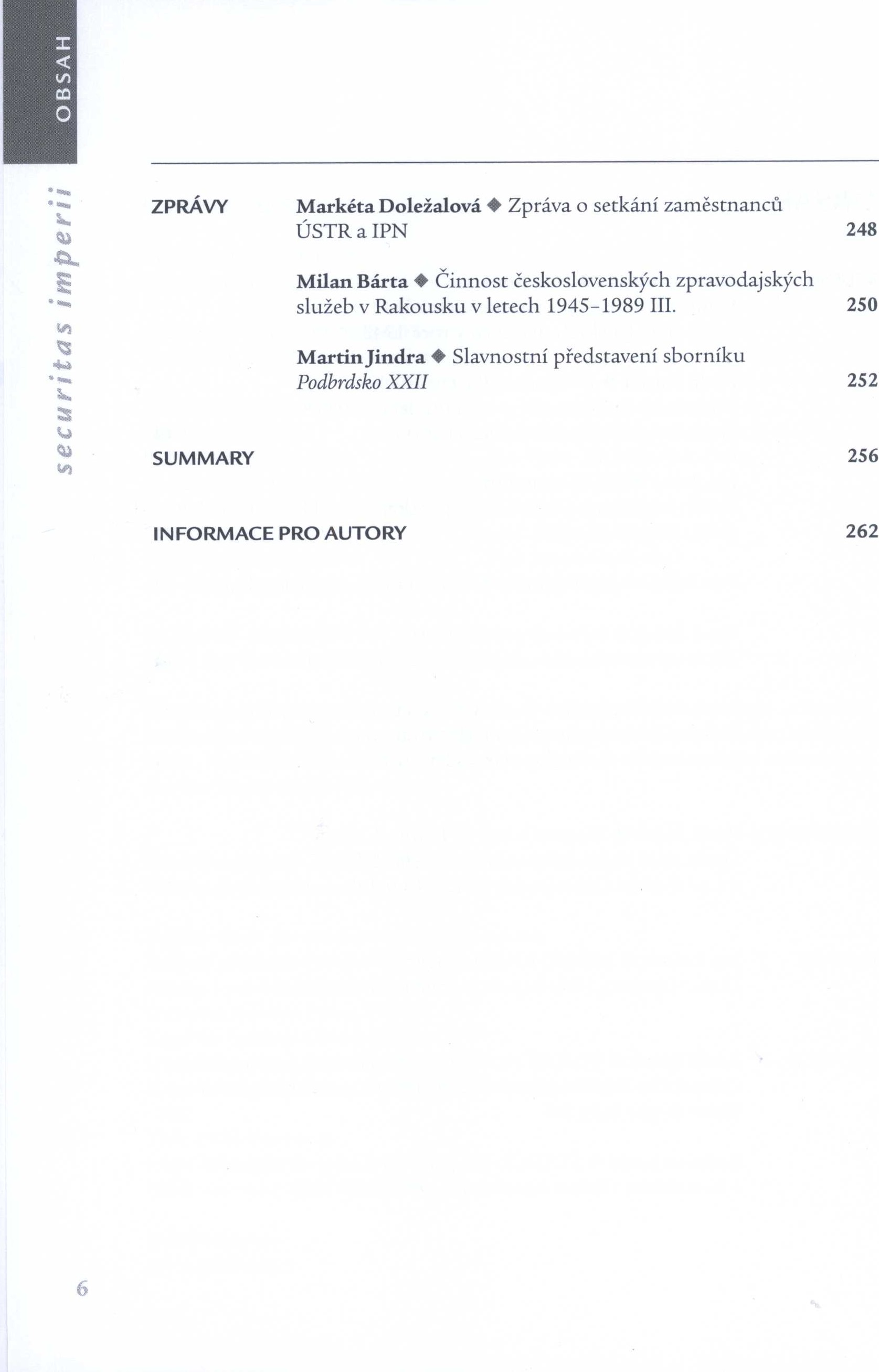 Title information Securitas imperii Další autoři Virkner, Patrik (Publishing director) Ježek, Jaroslav (Book designer) (Compositor) Corporation Ústav pro studium totalitních režimů (vědecký ústav) (Publisher) TNM PRINT s. r. o. (tiskárna) (Printer) Roč., číslo 27 (02/2015), 2015 Publication Praha : Ústav pro studium totalitních režimů, 2015 Manufacture TNM Print s.r.o. Scope 264 stran : fotografie, portréty, faksimile ; 23 cm ISSN 1804-1612 Country Czech Republic Language Czech Note Čb. fotografie, portréty a faksimile. - Anglická resumé.