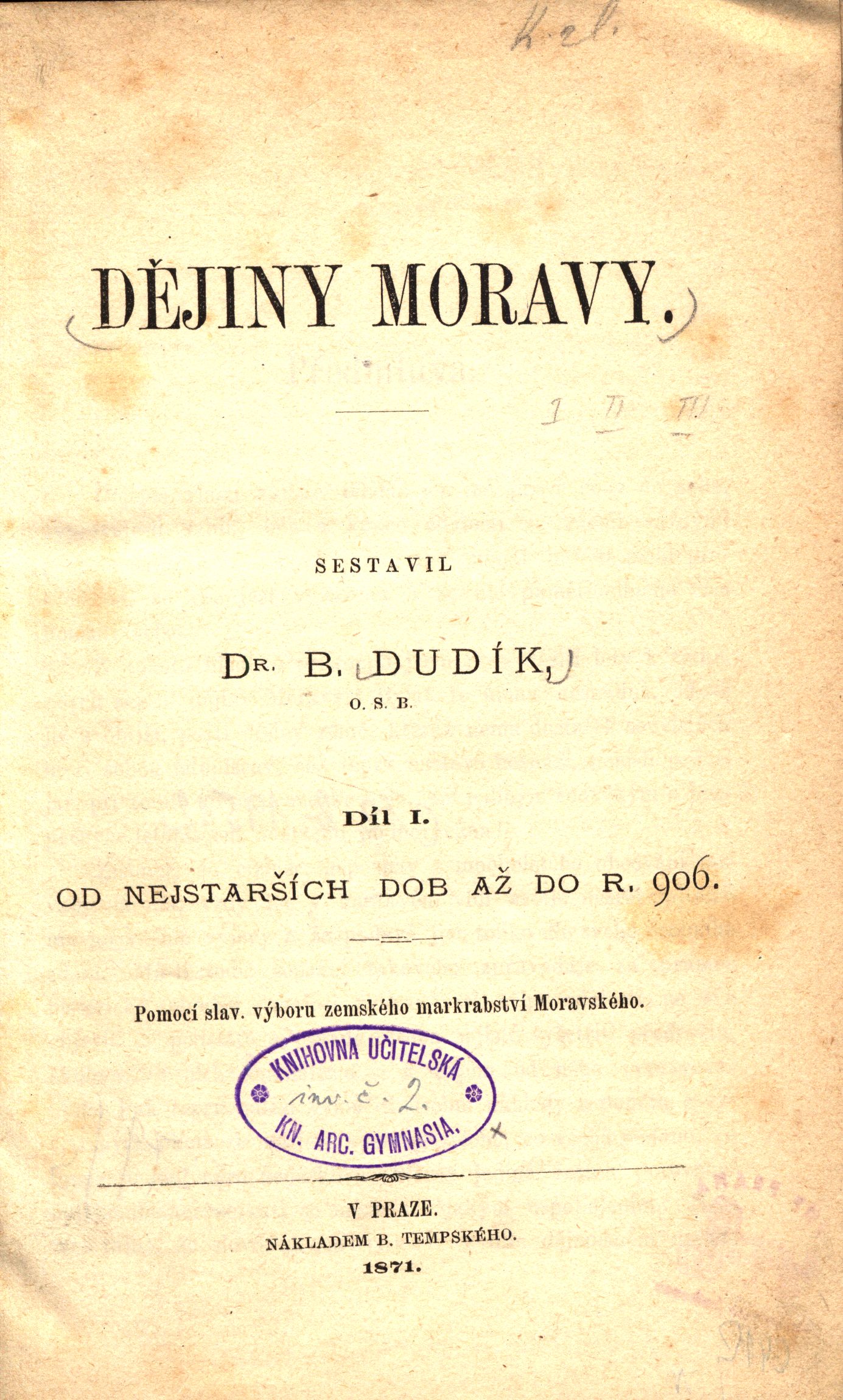 Názvové údaje Dějiny Moravy. Díl I, Od nejstarších dob až do r. 906 / sestavil B. Dudík Osobní jméno Dudík, Beda, 1815-1890 (Autor) Další autoři Tempsky, Friedrich, 1821-1902 (Nakladatel, vydavatel) Nakladatel V Praze : nákladem B. Tempského, 1871 Rozsah viii, 274 stran ; 21 cm ISBN (Vázáno) Země vyd. Česko Jazyk dok. čeština Poznámky [Vydáno] pomocí slav. výboru zemského markrabství Moravského (titulní list).