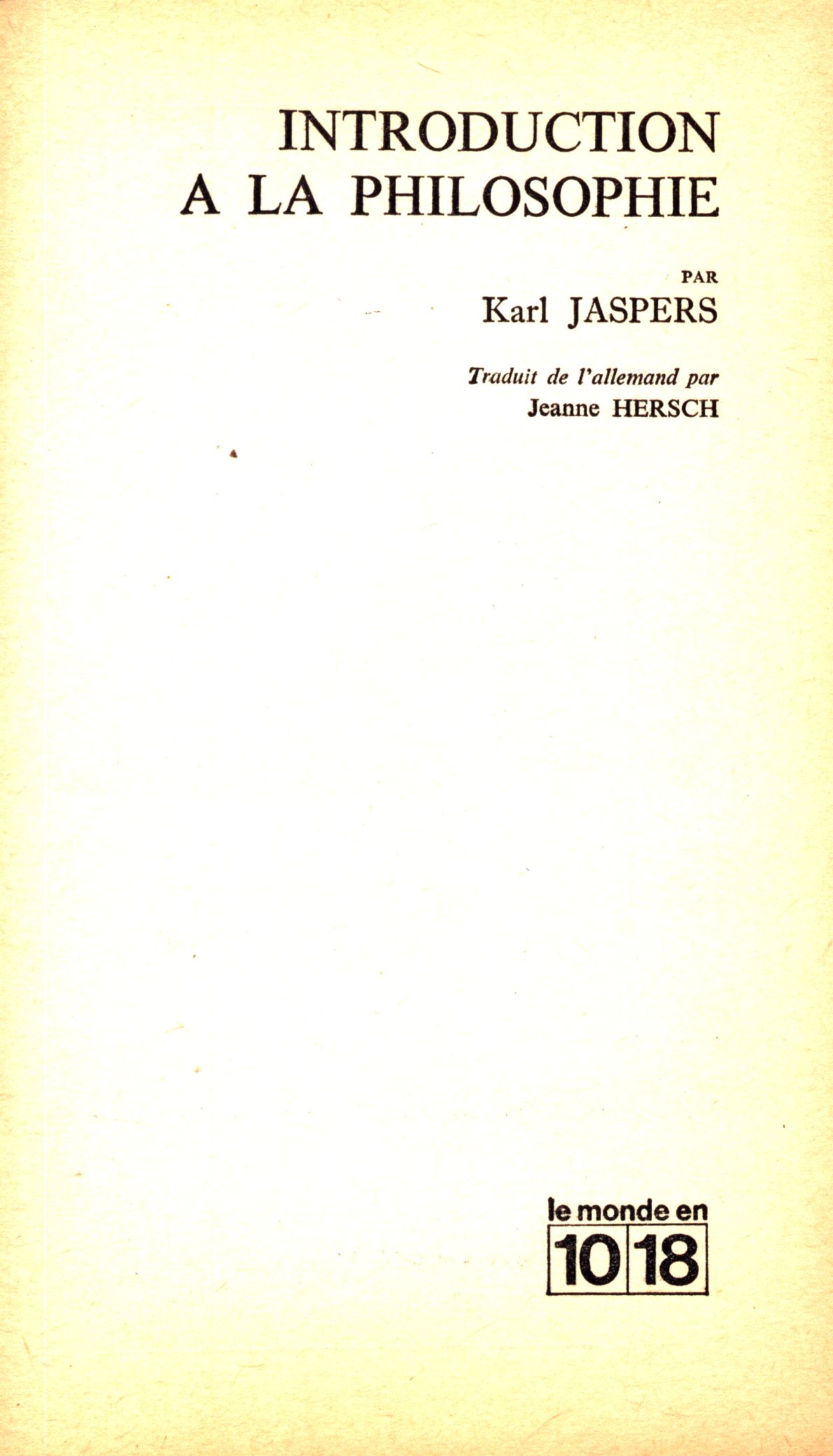 Title information Introduction a la philosophie / par Karl Jaspers ; traduit de l'allemand par Jeanne Hersch Personal name Jaspers, Karl, 1883-1969 (Author) Další autoři Hersch, Jeanne, 1910-2000 (Translator) Corporation Librairie Plon. Les petit-fils de Plon et Nourrit (Paris, Francie) (Publisher) Bussière (firma) (Printer) Publication Paris : Librairie Plon, 1965 Manufacture Saint-Amand (Cher) : Imprimerie Bussière Scope 190 stran ; 18 cm ISBN (brožováno) Edition Bibliothéque 1018 ; 269