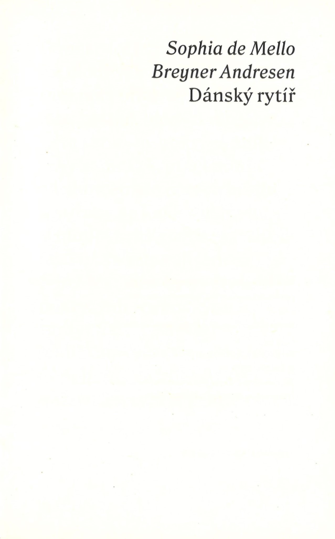 1. Title informationDánský rytíř = O cavaleiro da Dinamarka / Sofia de Melo Breyner Andresen ; z portugalského originálu přeložily Šárka Grauová & Karolína Jandová ; ilustrovala Darja Čančíková ; graficky upravil a z písma Roslindale vytisknul Juraj Horváth