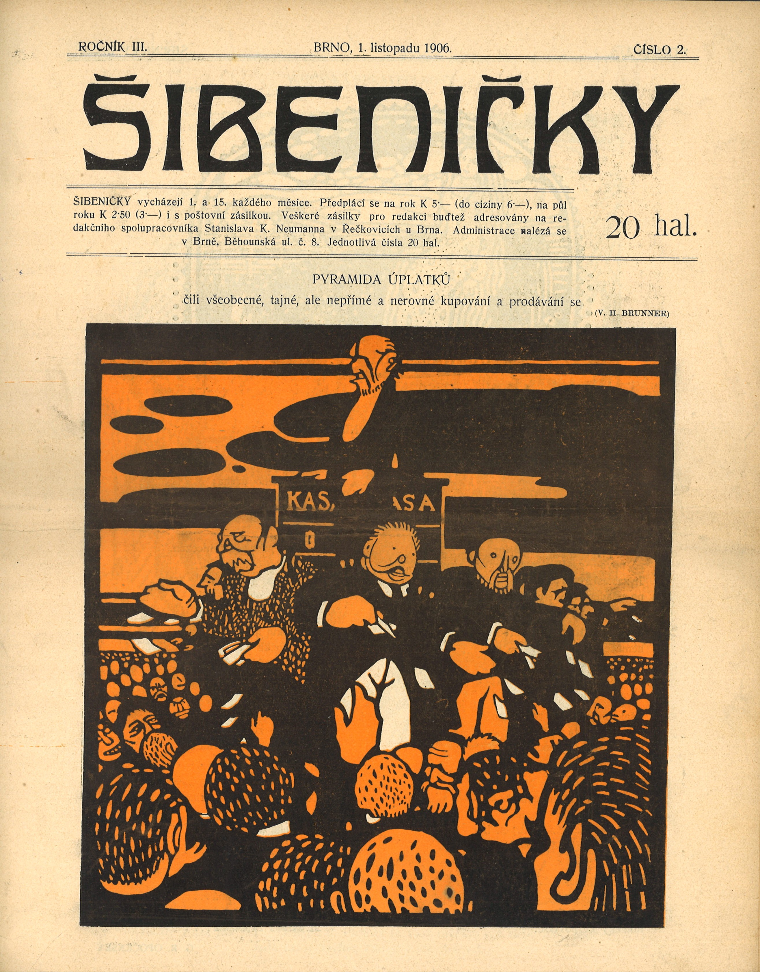 Title information Šibeničky Další autoři Neumann, Stanislav Kostka, 1875-1947 (Redactor) (Publisher) Roč., číslo Ročník 3, číslo 1-14, 1906/1907 Publication V Řečkovicích u Brna: Stanislav K. Neumann, 1906-1907 Scope ilustrace ; 32 cm Country Czech Republic Language Czech Note Od č. 2 barevně tónované obálky. - Čb. ilustrace