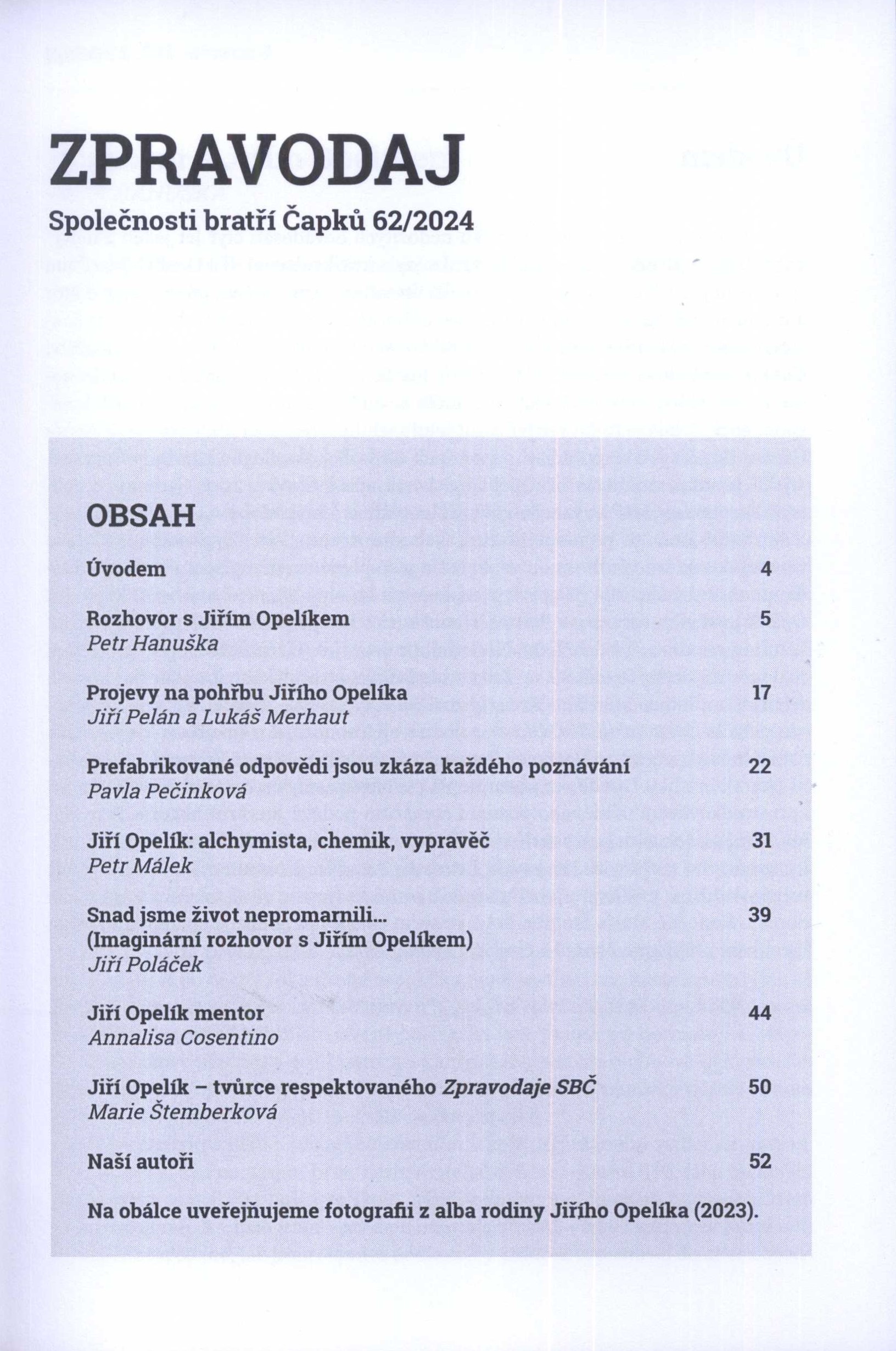 Title information Zpravodaj Společnosti bratří Čapků Další autoři Mareš, Petr, 1954- (Redactor) Corporation Indigoprint (tiskárna) (Printer) Roč., číslo Číslo 62, 2024 Publication Praha : Společnost bratří Čapků, 2024 Manufacture Indigoprint s.r.o. Scope 55 stran ; 21 cm ISSN 1805-7527 Country Czech Republic Language Czech Note Na obálce fotografie Jiřího Opelíka. - Poznámky o autorech. - Neprodejný tisk pro členy Společnosti bratří Čapků