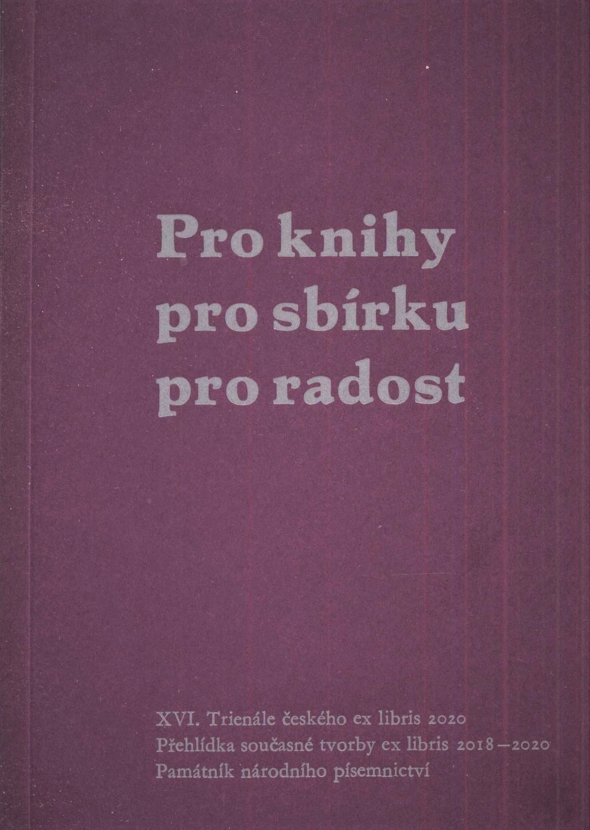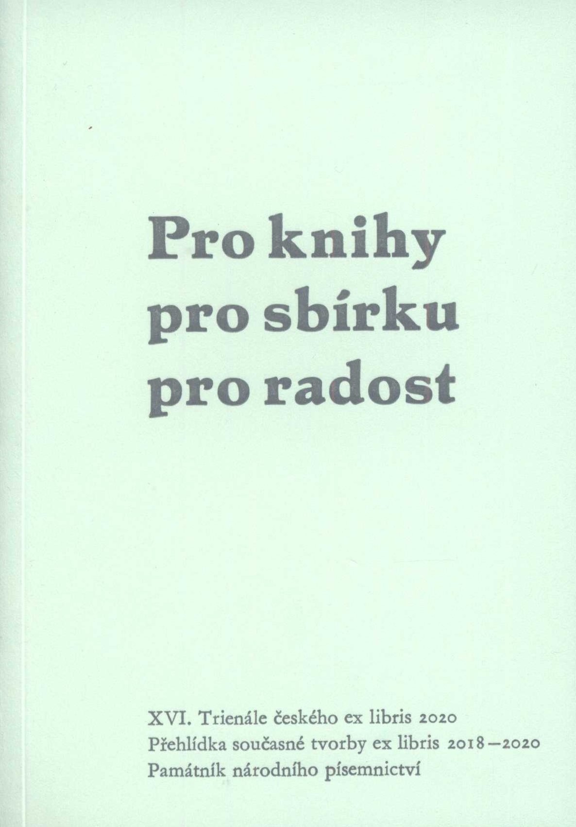 1. Title informationPro knihy, pro sbírku, pro radost : XVI. Trienále českého ex libris 2020 = For books, for the collection, for fun : XVI. Triennale of czech ex libris 2020 / texty: Zdeněk Freisleben, Pavel Piekar, Vilma Hubáčková, Felix Černoch, Martina Vyšohlídová, Martin Mulač, Jana Solomonová ; překlad: Alžběta Ambrožová ; grafická úprava: Helena Šantavá