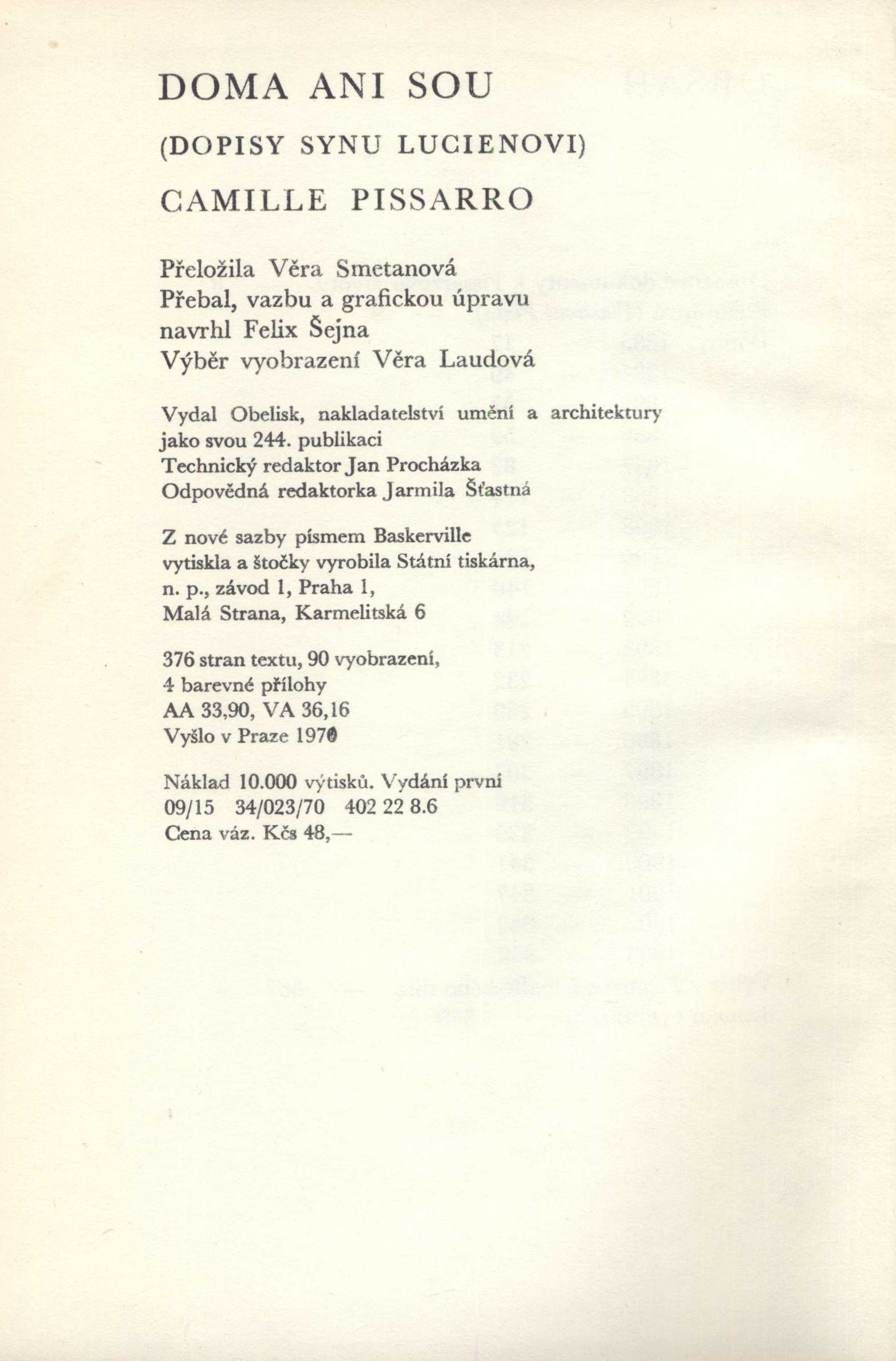 $a Doma ani sou : $b dopisy synu Lucienovi / $c Camille Pissarro ; přeložila Věra Smetanová 246 13