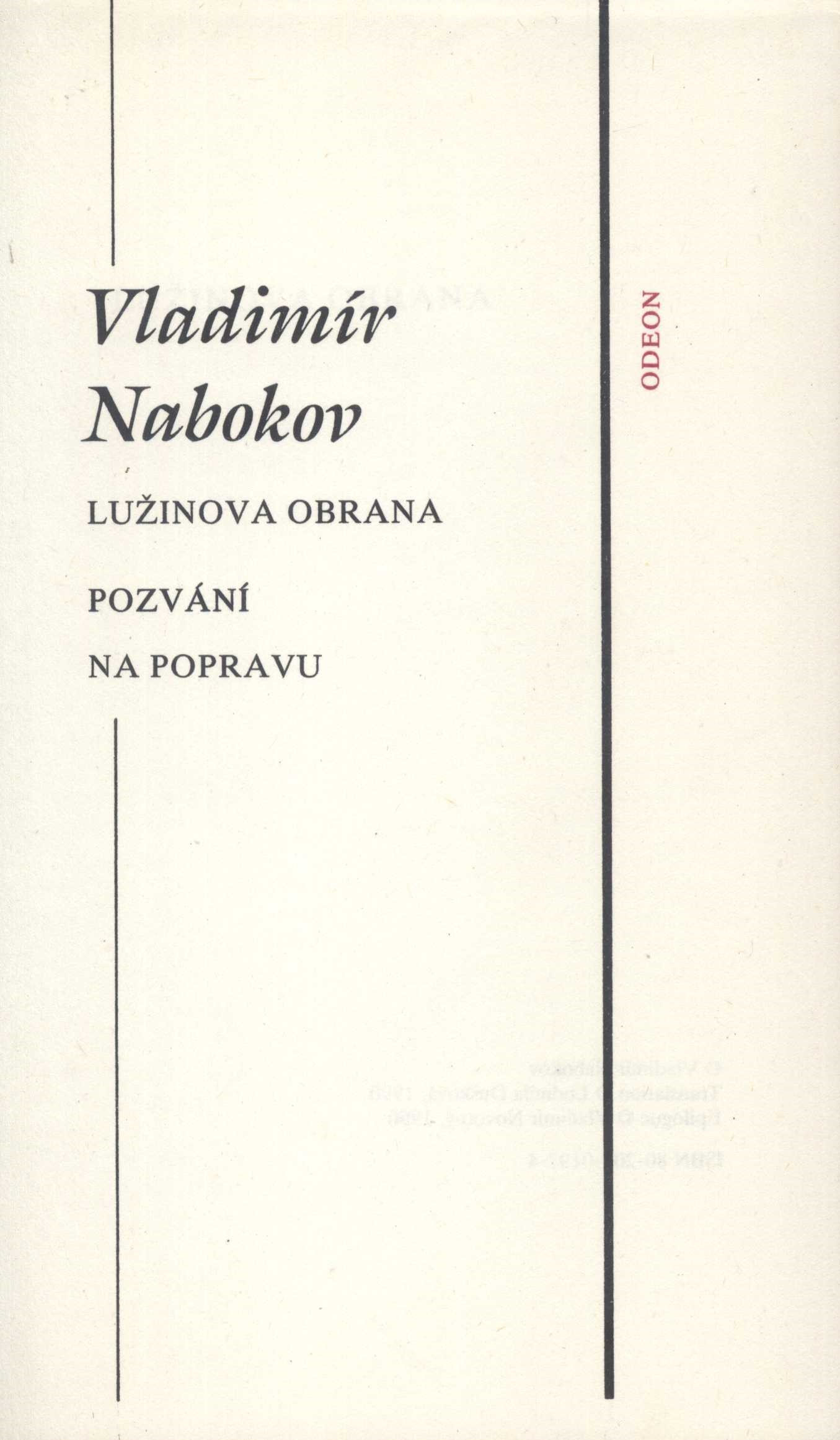 Title information Lužinova obrana ; Pozvání na popravu / Vladimír Nabokov ; z ruských originálů Zaščita Lužina a Priglašenije na kazň ... přeložila Ludmila Dušková Personal name Nabokov, Vladimir Vladimirovič, 1899-1977 (Author) Další autoři Dušková, Ludmila, 1932-2010 (Translator) Novotný, Vladimír, 1946- (Author of afterword, colophon, etc.) Krátky, Andrej, 1966- (Typographer) Corporation Odeon (nakladatelství). Klub čtenářů (Publisher) Těšínská tiskárna (Printer) Edition statement Vydání první Publication Praha : Odeon, 1990 Manufacture Český Těšín : Těšínská tiskárna Scope 316 stran ; 21 cm ISBN 80-207-0197-4 (vázáno) Edition Klub čtenářů ; svazek 632