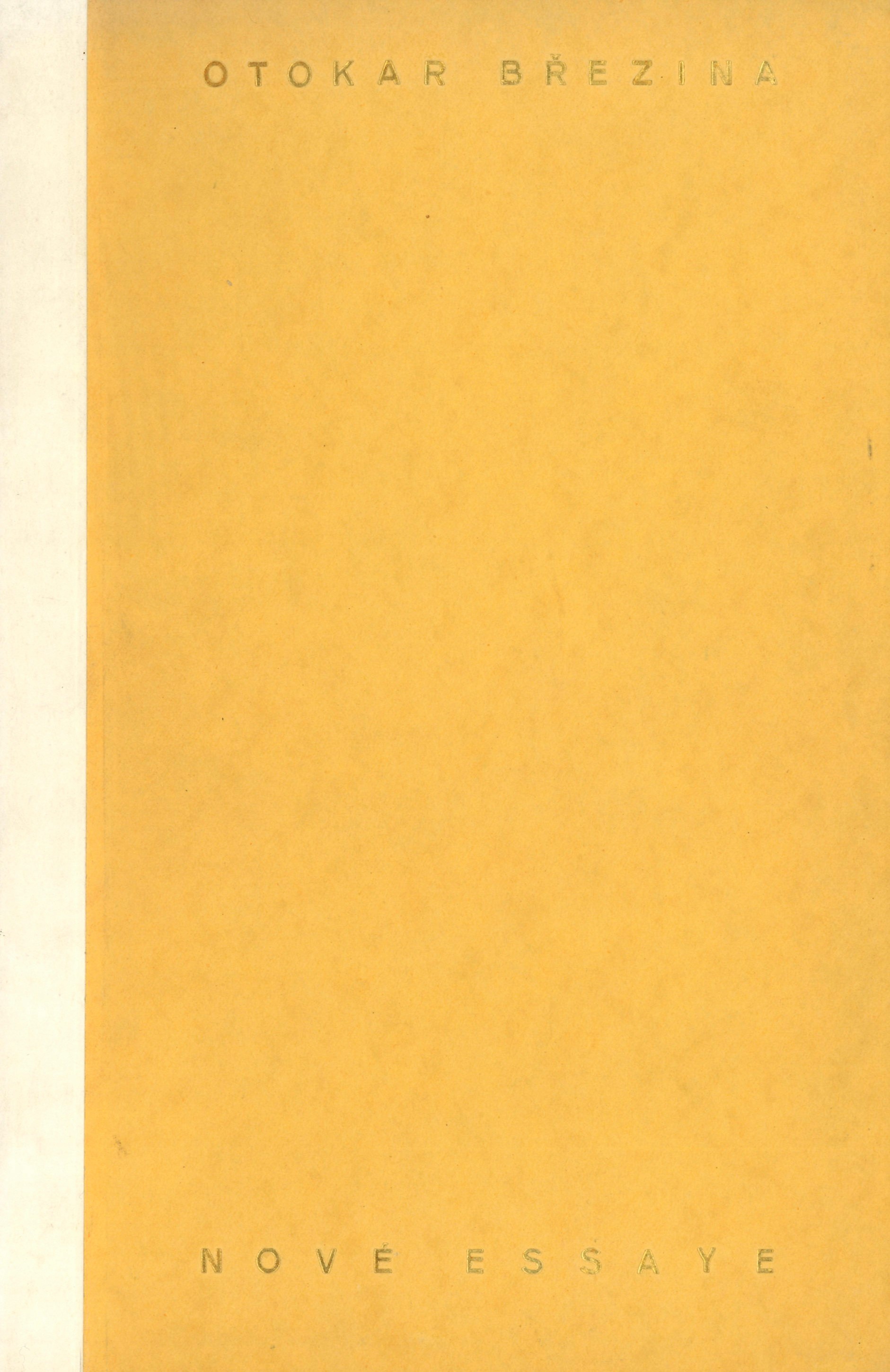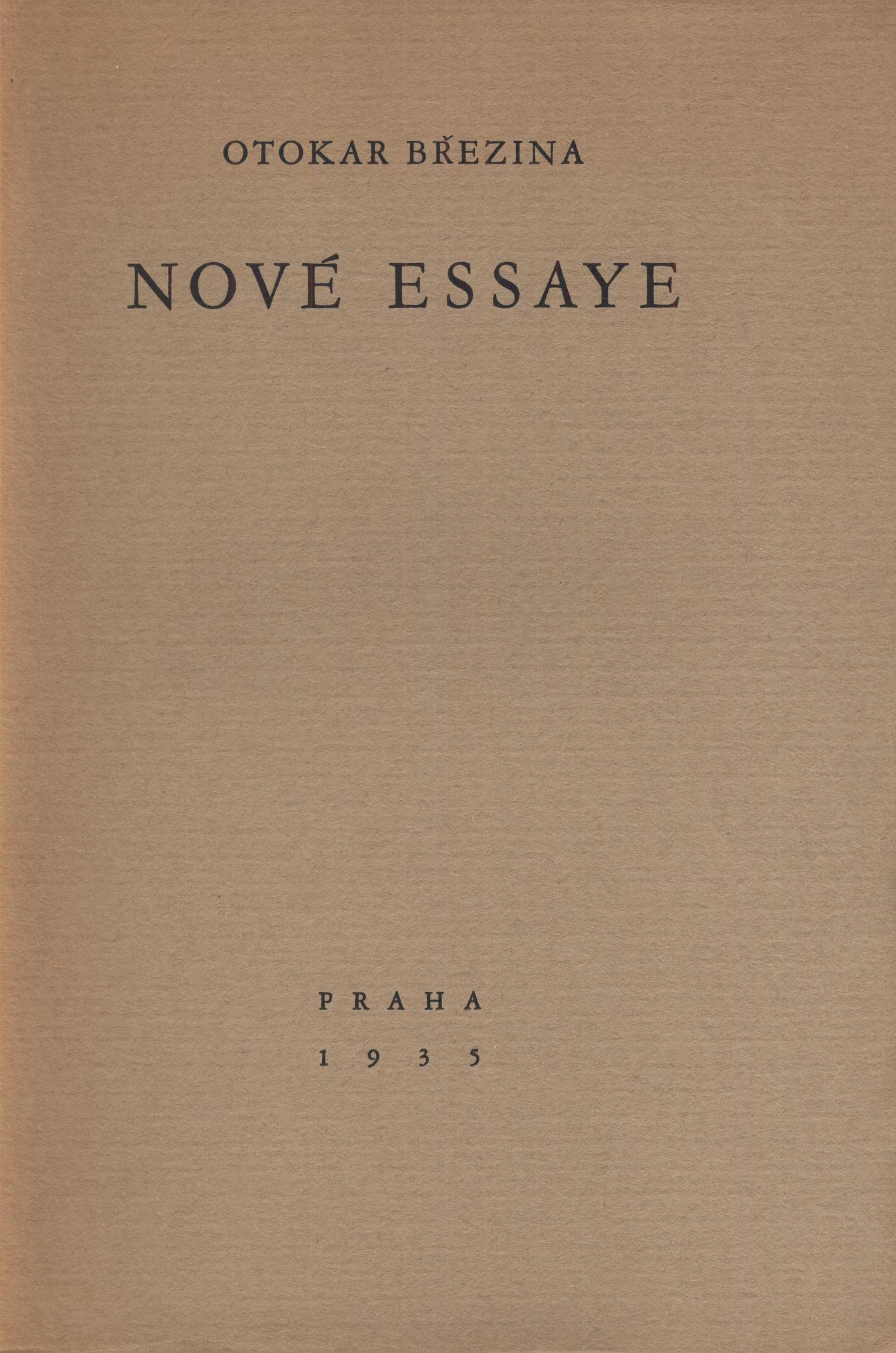 Title information Nové essaye / Otokar Březina Personal name Březina, Otokar, 1868-1929 (Author) Další autoři Fiala, Otakar, 1889-1977 (Editor) Lukšů, Matěj, 1868-1931 (Editor) Chalupný, Emanuel, 1879-1958 (Editor) Corporation Orbis (tiskárna) (Printer) Publication Praha : [nakladatel není známý], 1935 Manufacture Knihtiskárna Orbis Scope 8, 15, 11, 10 stran ; 24,5 cm ISBN (Brožováno) Country Czech Republic Language Czech Note Typografická obálka.