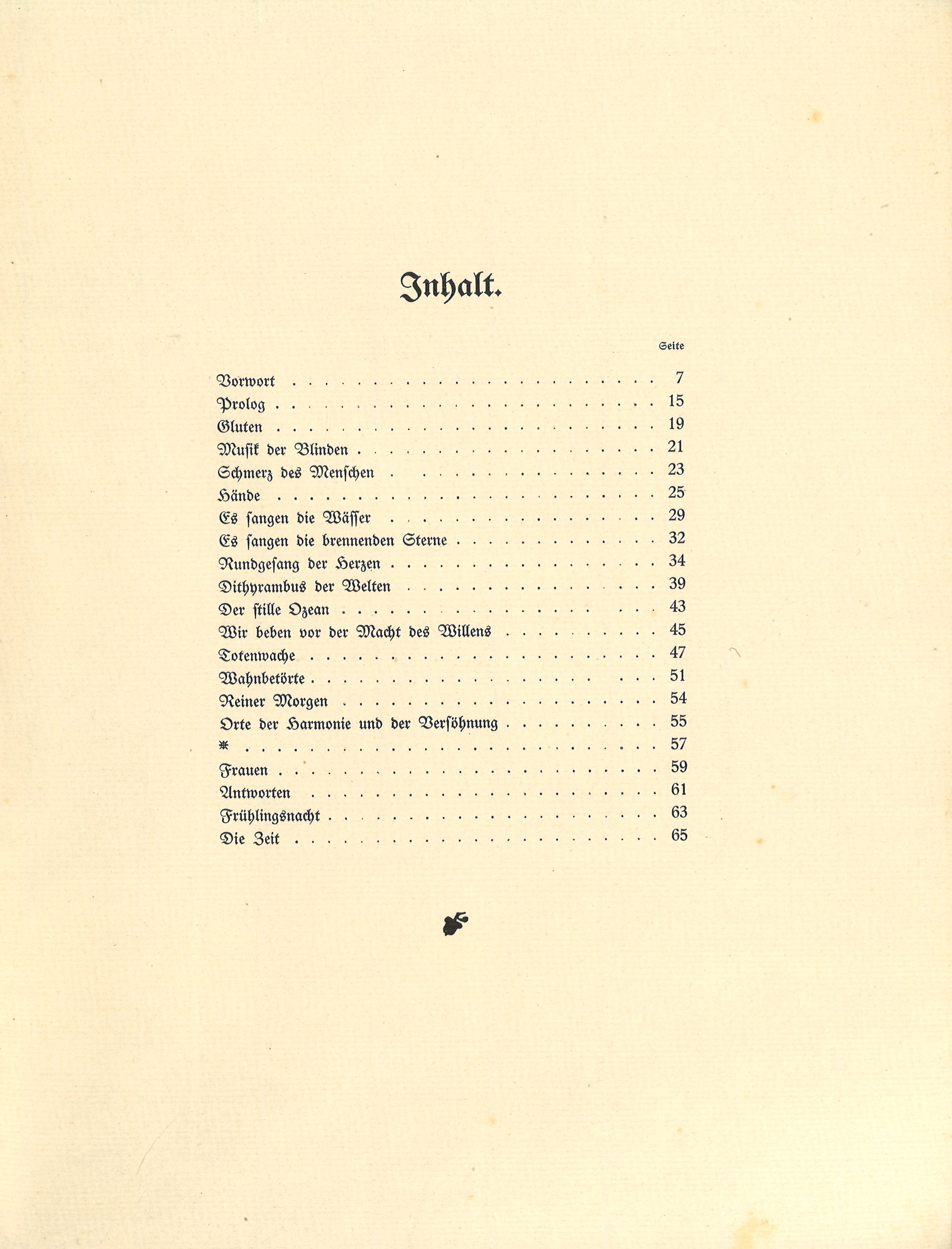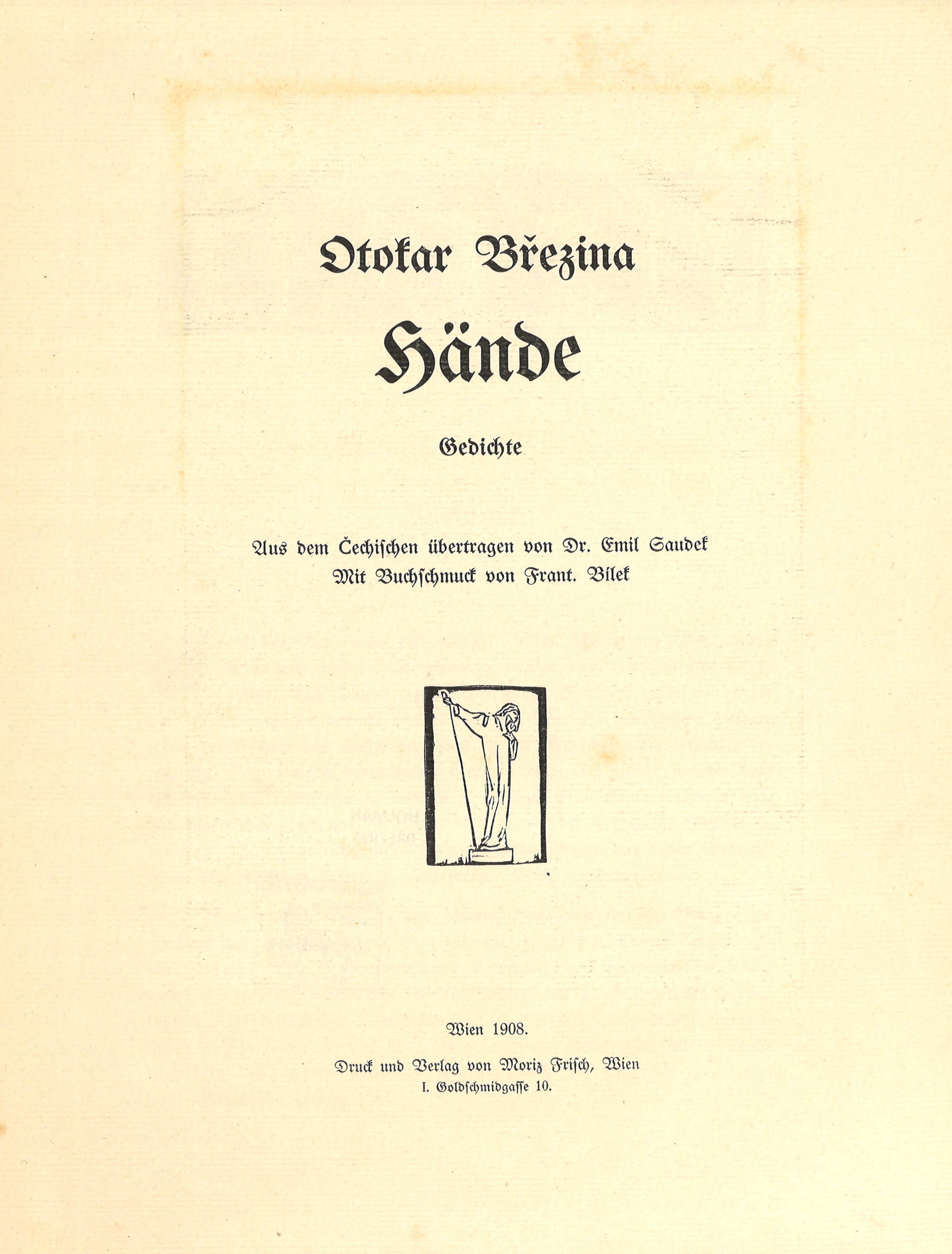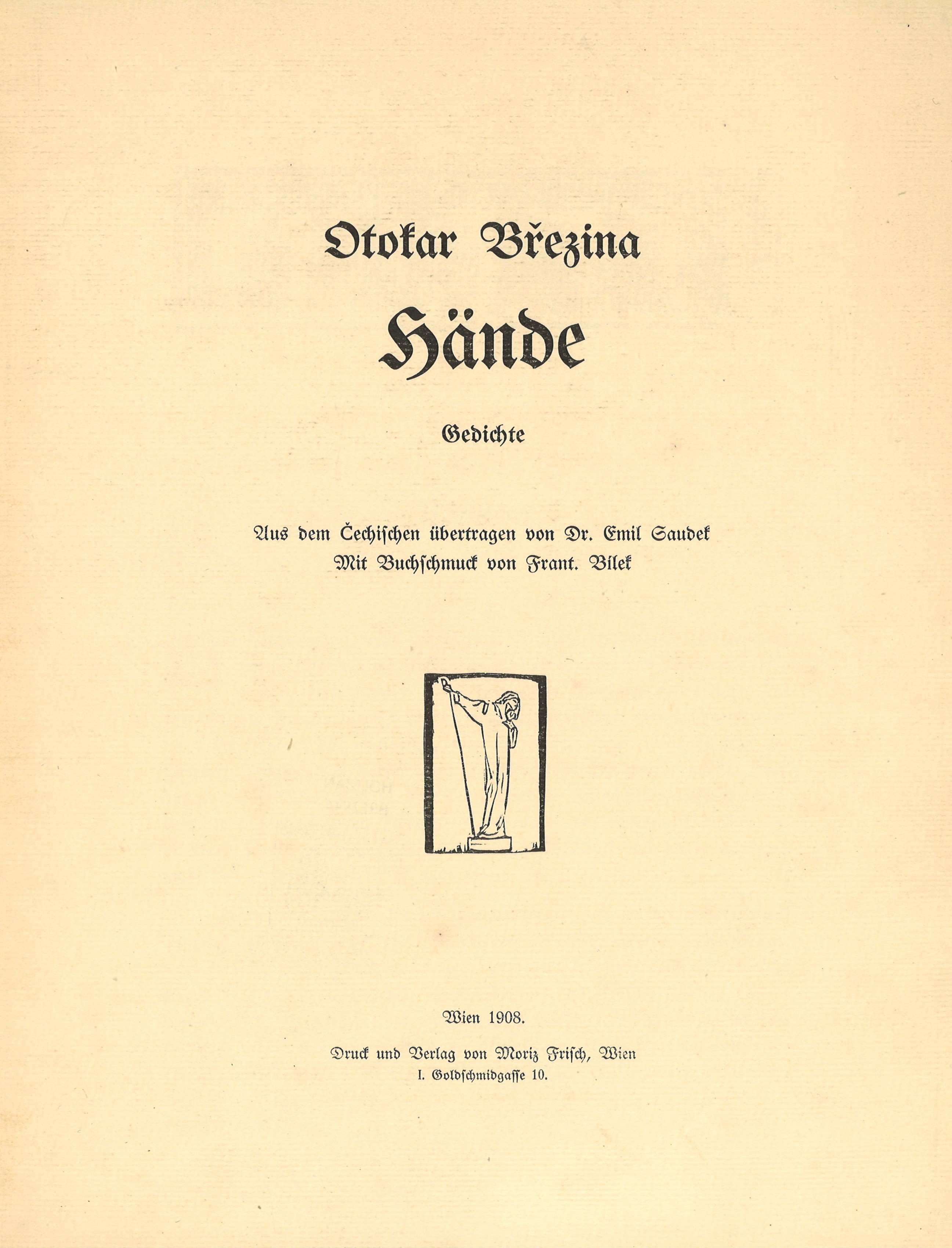 1. Title informationHände : Gedichte / Otokar Březina ; aus dem Čechischen übertragen von Emil Saudek ; mit Buchschmuck von Frant. Bílek