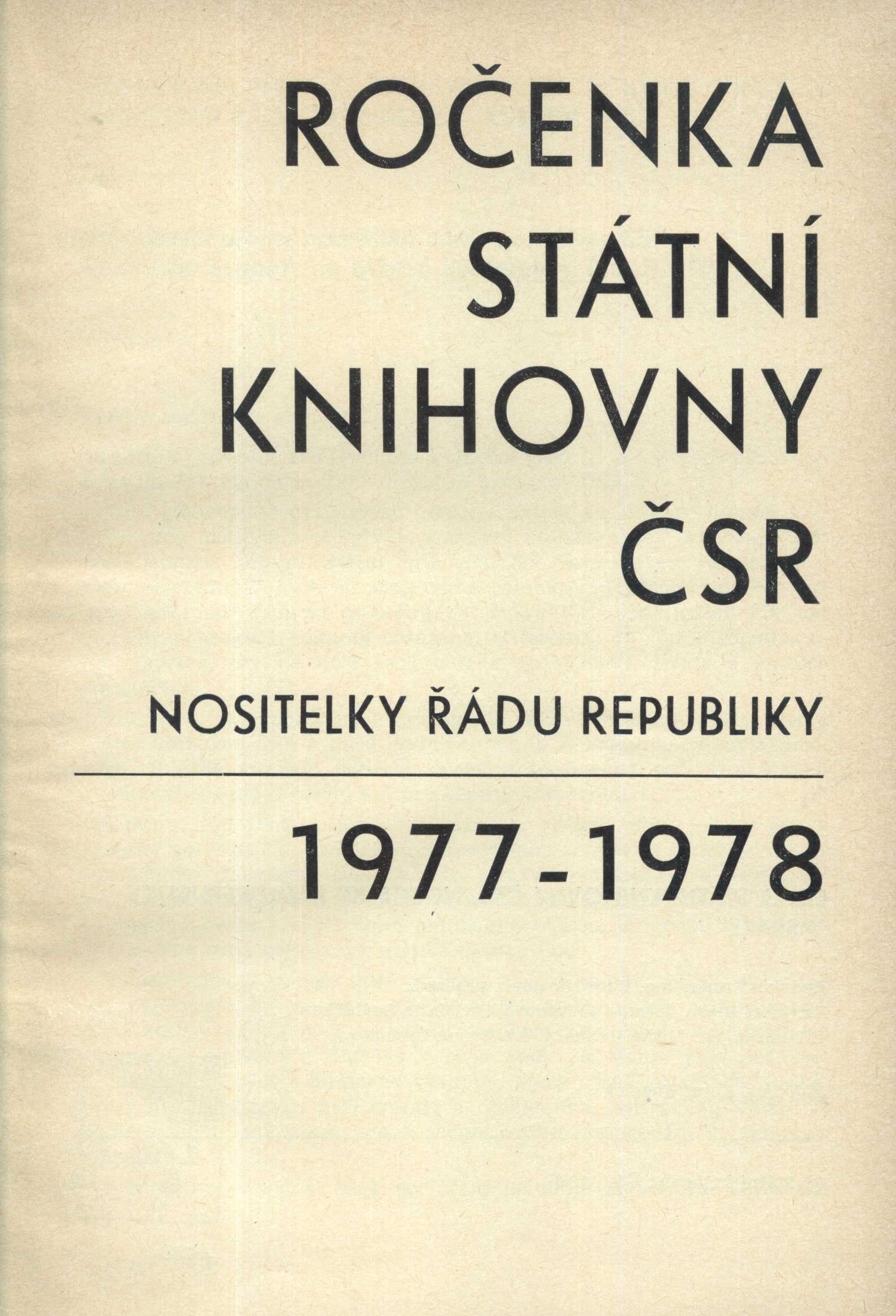 Ročenka Státní knihovny ČSR nositelky Řádu republiky 1977-1978