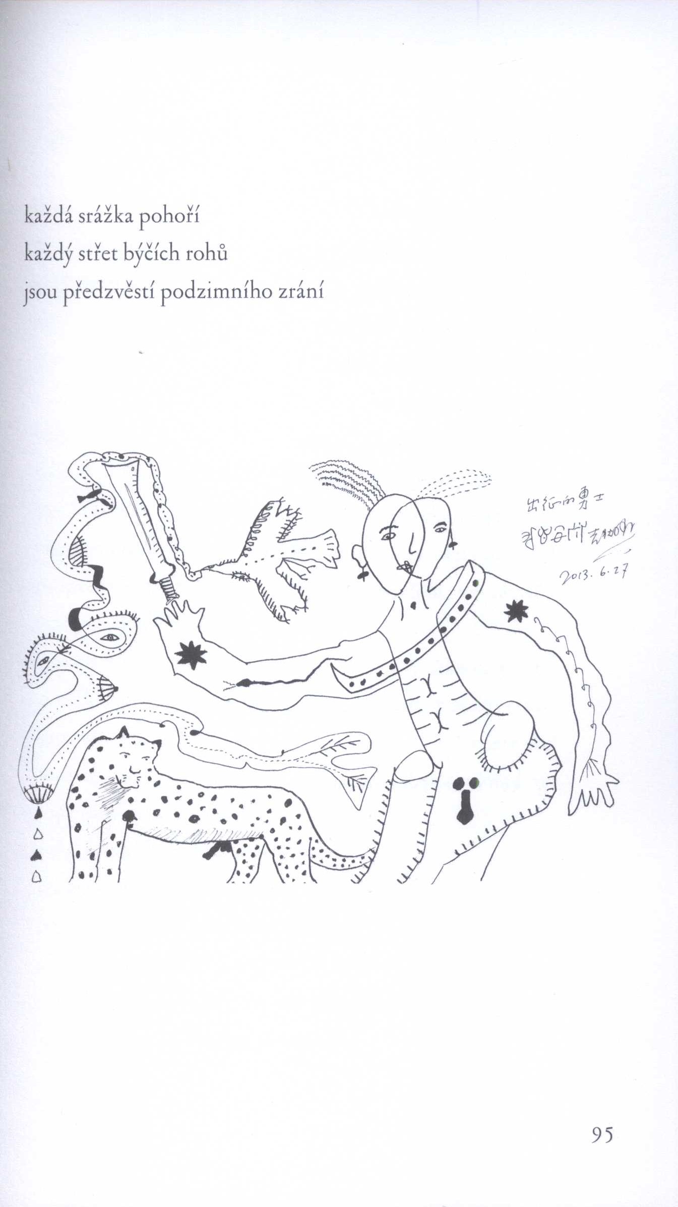 $a druhý svazek edice JednaVelkáBáseň 500 $a Doslov a jazyková spolupráce Jan Karlach 500 $a Ilustrace autor 500 $a Na obálku byla použita autorova kresba Země - matka 500 $a Obálka, sazba a grafická úprava Dauphin 500 $a 1. doslov Juan Gelman, 2. doslov Jan Karlach, 3. doslov Jaromír Typlt 520 $a Výbor z díla jednoho z největších čínských básníků současnosti. Jidi Majia je Nuosu, příslušník etnika, jejichž totemovým zvířetem je orel, etnika obývajícího rozsáhlé převážně horské území tzv. Chladných hor na jihozápadě Číny. 520 $a Svět tichých, hlubokých údolí, svět lovců, leopardů, krásných horalek s barevnými širokými sukněmi a žlutými slunečníky, svět pohanky, ohně, slunce a šamanských rituálů, tento svět je v básních Jidi Majia velmi živý, i když zastřený mlhou. V realitě posledních let nuosuský svět postupně mizí v nenávratnu... Jidi Majia však není jen bardem svého lidu, je uznáván také literární kritikou jako osobitý básník v kontextu současné čínsky psané poezie, horizont jeho obzoru nekončí na hranici rodného kraje ani hranici Číny. Jidi Majia cítí spřízněnost s kulturami amerických Indiánů i s osobnostmi evropské či americké literatury, se kterými rozmlouvá a k nimž se také vztahuje. Ať již píše Jidi Majia o domově nebo o světě za oceánem, jeho jednoduché verše podivnou silou čtenáře uhranou, okouzlí, vtáhnou. Jidi Majia v jedné básni říká, že svá slova hází na oheň, aby nevyhasl. Nakladatelská anotace. Kráceno. 600 17
