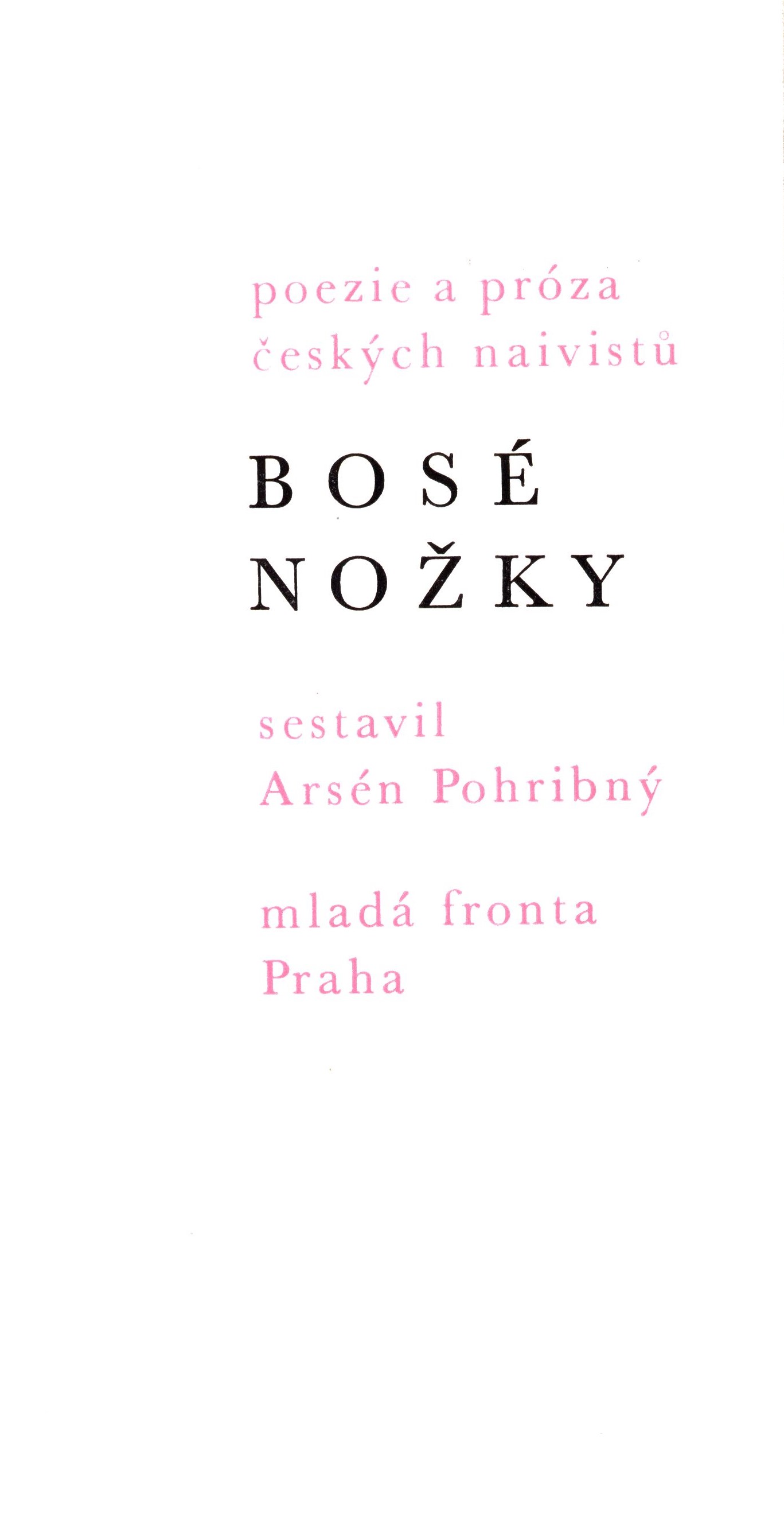 1. Title informationBosé nožky : poezie a próza českých naivistů / sestavil a portréty jednotlivých autorů napsal Arsén Pohribný ; přebal, vazbu a grafickou úpravu navrhl Miroslav Fulín