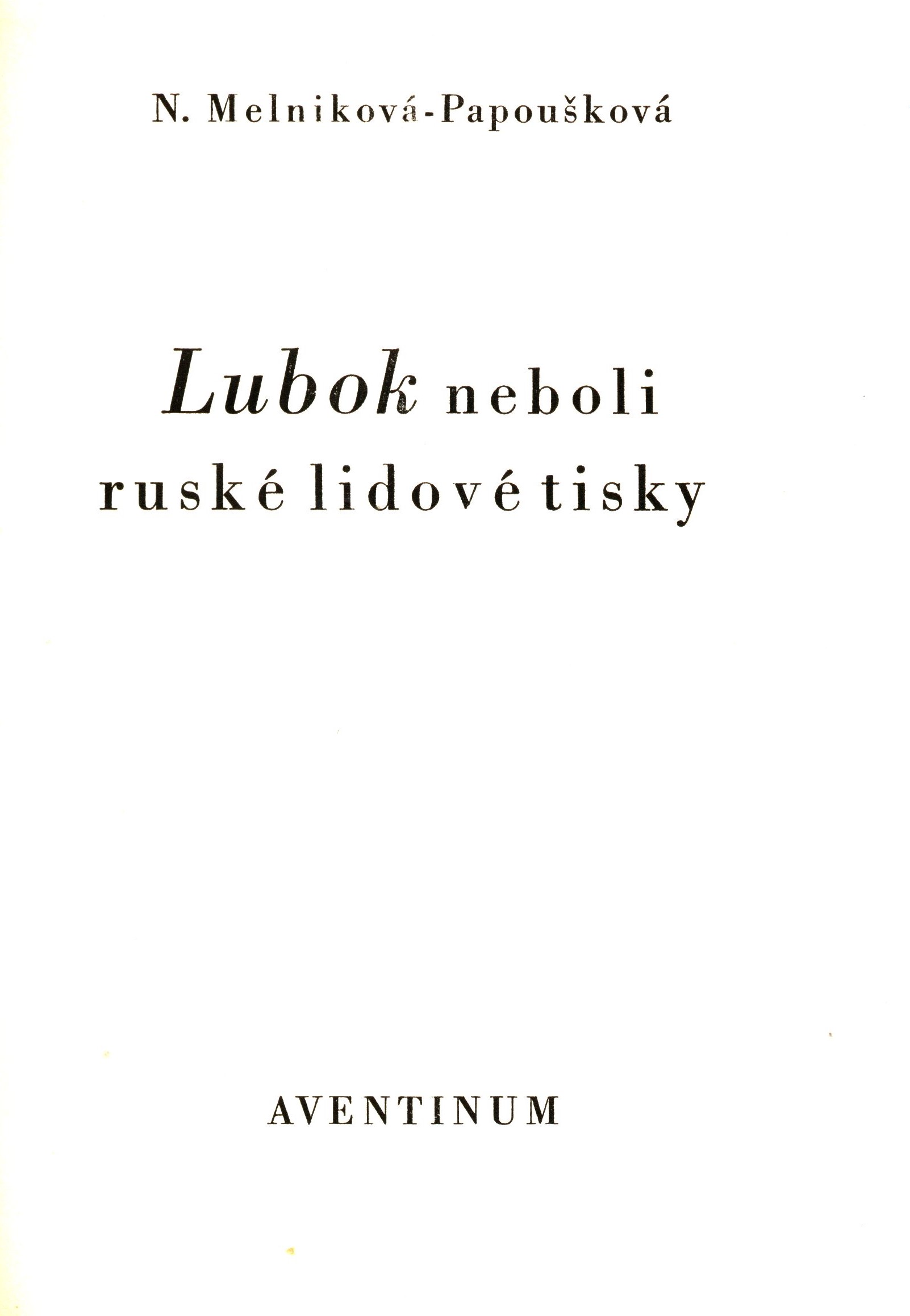$a Lubok neboli ruské lidové tisky / $c N. Melniková-Papoušková ; s obálkou a předsádkou a v úpravě Bohumila Trity 264 -1