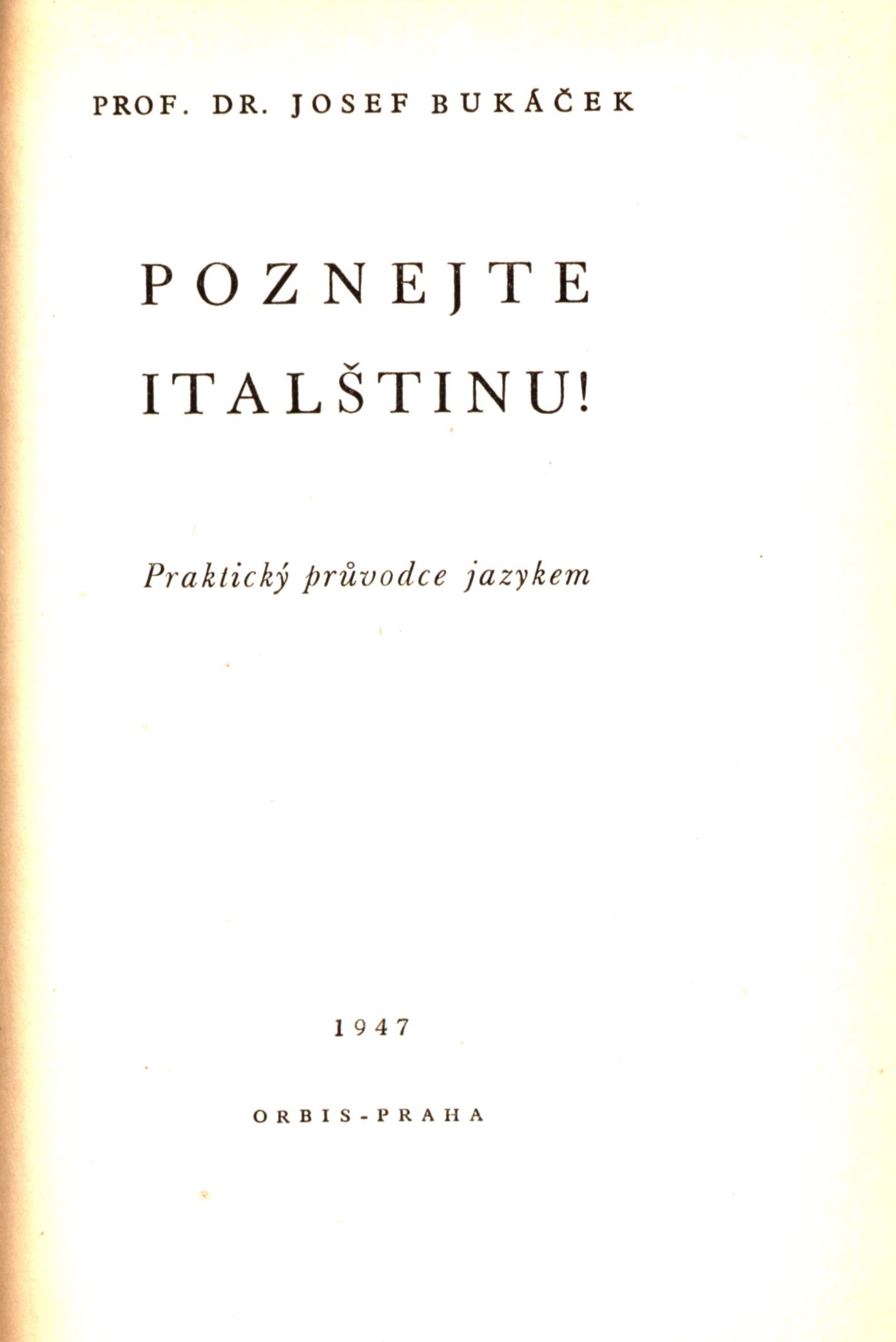 $a Poznejte italštinu! : $b praktický průvodce jazykem / $c Prof. Dr. Josef Bukáček ; obálku navrhla Vilma Lesková 264 -1