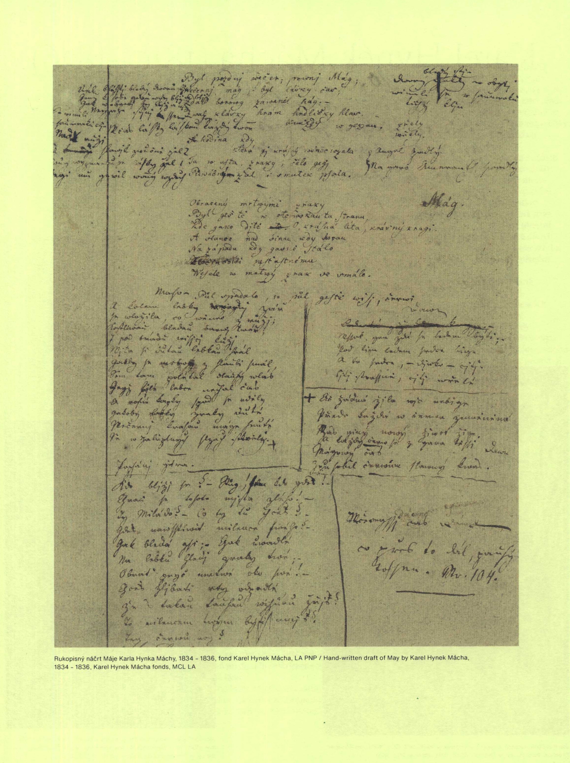 Note Žlutá obálka s fotografiemi lebky (přední i zadní strana), černý text. - Na rubu přední strany obálky popis fotografie, text, copyrighty. - Text a černobílá kresba (popiska). - Máj (faksimile s popisky). - Texty. - Černobílé ilustrace, fotografie, portréty, fasimile s popisky. - Tiráž.