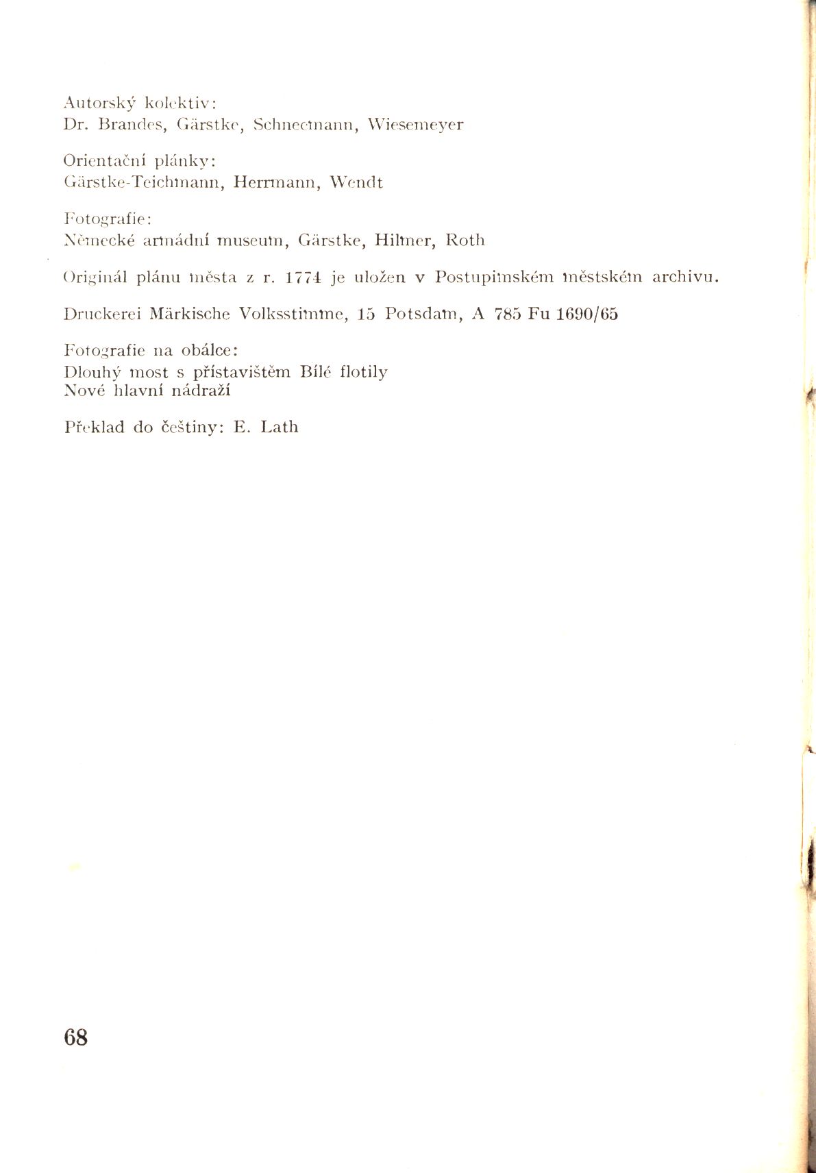 1. Title informationPostupim : město a okolí / autorský kolektiv Brandes, Gärstke, Schneemann, Wiesemeyer ; orientační plánky Gärstke-Teichmann, Herrmann, Wendt ; fotografie Německé armádní muzeum, Gärstke, Hilmer, Roth ; překlad do češtiny E. Lath