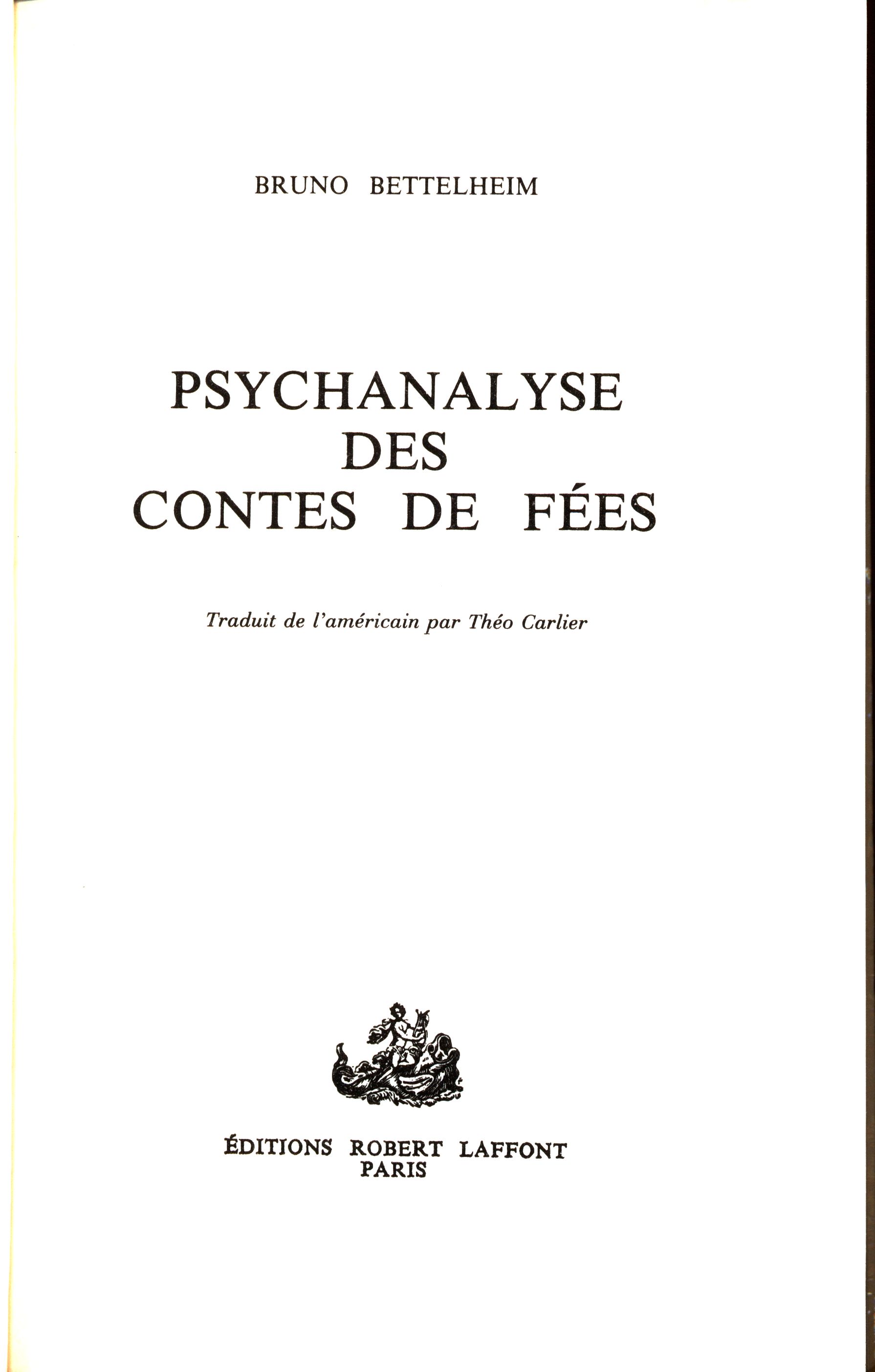 Title information Psychanalyse des contes de fées / Bruno Bettelheim ; traduit de l'américain par Théo Carlier Personal name Bettelheim, Bruno, 1903-1990 (Author) Další autoři Carlier, Theo (Translator) Corporation Èditions Robert Laffont (Publisher) Floch (francouzská tiskárna) (Printer) Publication Paris : Éditions Robert Laffont, [1977] Manufacture Mayenne : Floch Copyright notice date ©1976 Scope 403 stran ; 25 cm ISBN (brožováno) Country France Language French Language of the original English Note Barevná zdobená obálka. - Na přední záložce obálky poznámka o autorovi. - Na frontispisu soupis děl autora. - Titulní list s nakladatelskou značkou. - Poznámky. - Bibliografie. - Rejstřík.