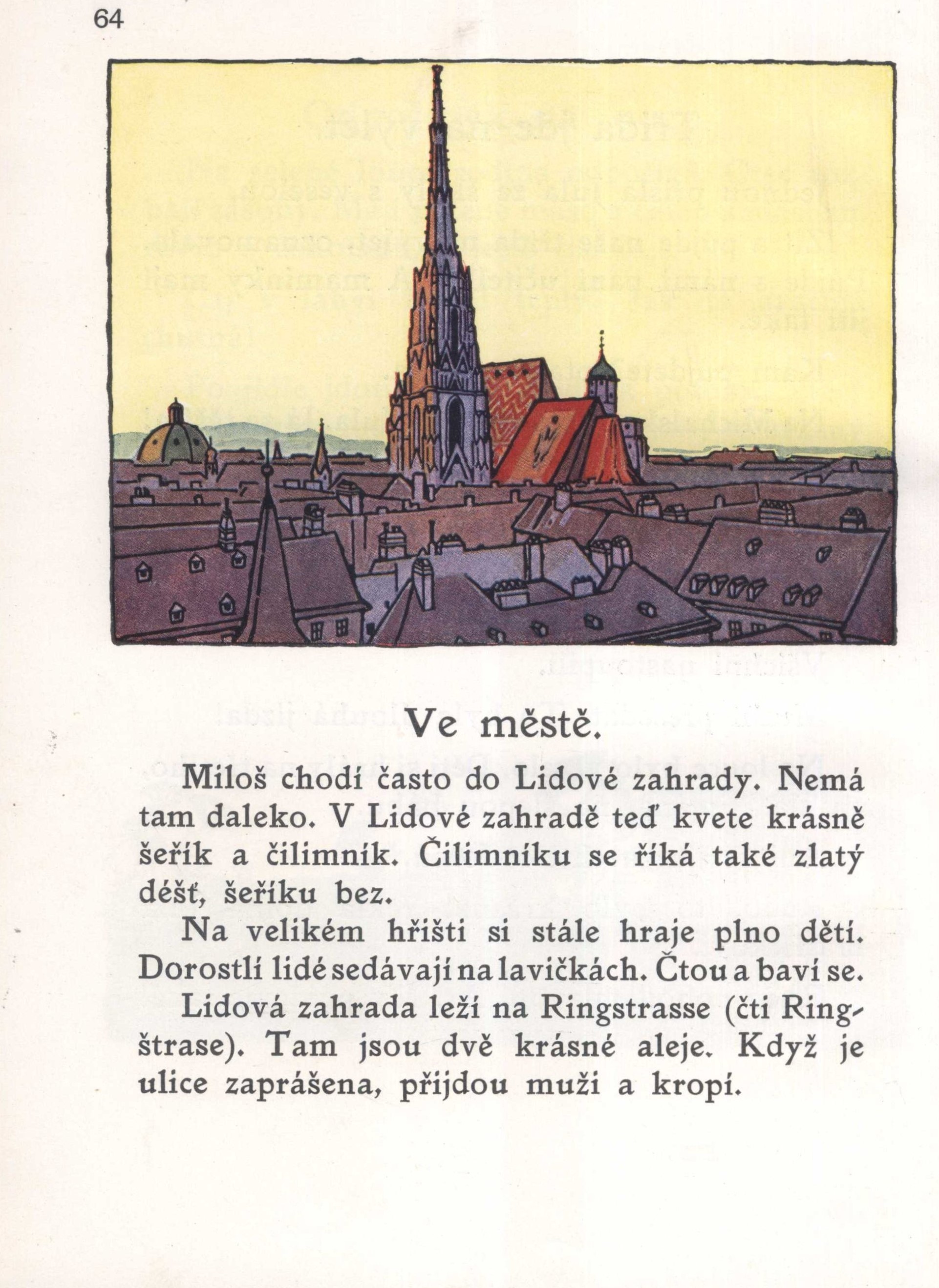 Title information První kniha vídeňských dětí / dle čítanky Wiener Kinder. 1. Buch, kterou vydali Heeger-Legrün, upravili pro české vídeňské obecné školy T. Jakeš a A. Dvořáková ; obrázky kreslil Fr. Wacik Další autoři Jakeš, T. (Adapter) Dvořáková, A. (Adapter) Wacik, Franz, 1883-1938 (Illustrator) Publication Wien, Berlin, Leipzig, New York : Deutscher Verlag für Jugend und Volk, 1926 Manufacture Vídeň : Tiskem synů Krištofa Reissera Scope 90 stran : ilustrace ; 25 cm Country Austria Language Czech Language of the original German Note Zelená vazb as barevnou ilustrací, bílý text; zelený plátěný hřbet. - Barevně ilustrované předsádky. - Údaje o knize, copyrighty a údaje tiráže na rubu titulního listu. - Černobílé a barevné ilustrace. - Tištěný i psaný text. - Obsah.