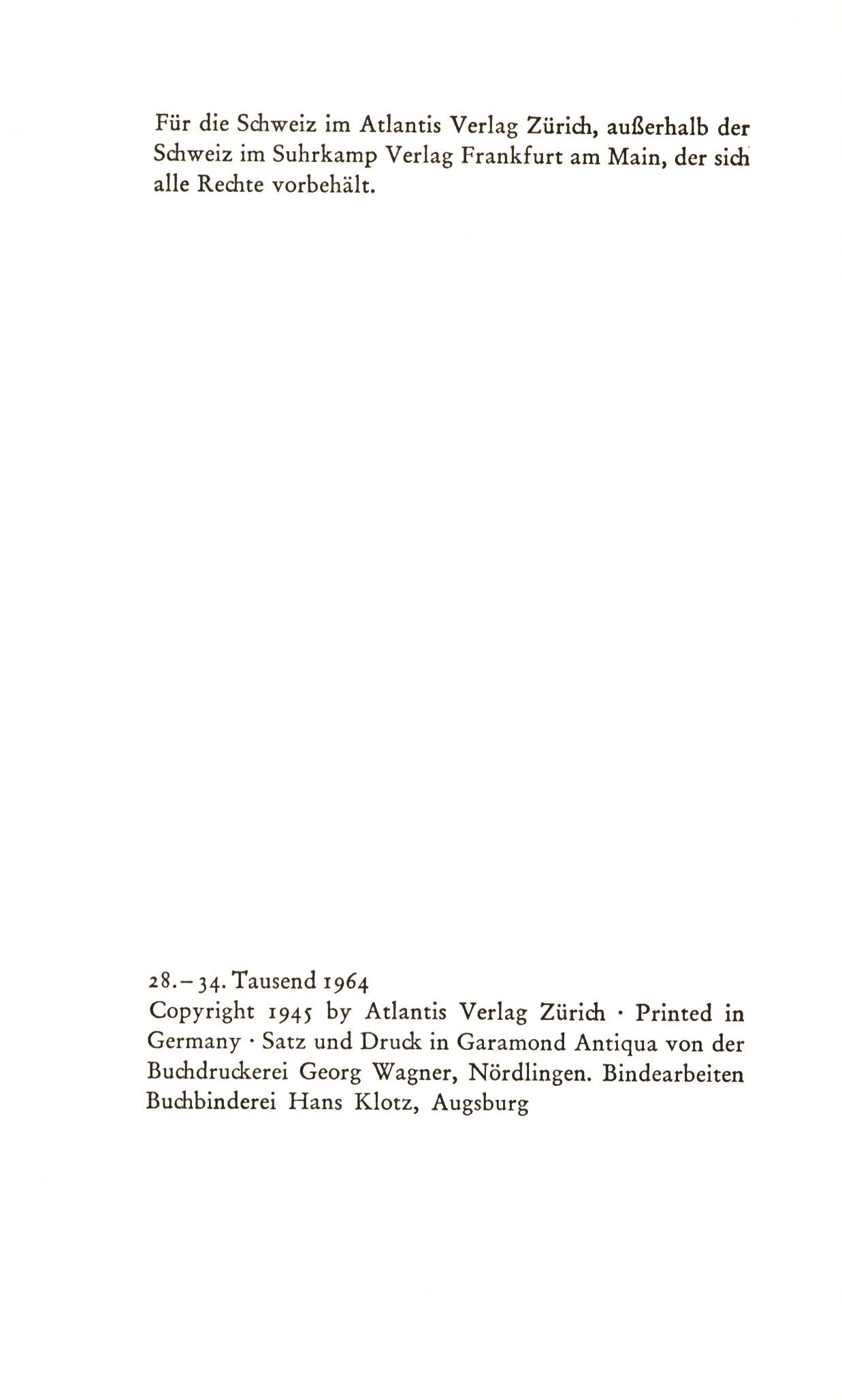 PublicationZürich ; Frankfurt am Main : Altantis Verlag ; Suhrkamp Verlag, 1964