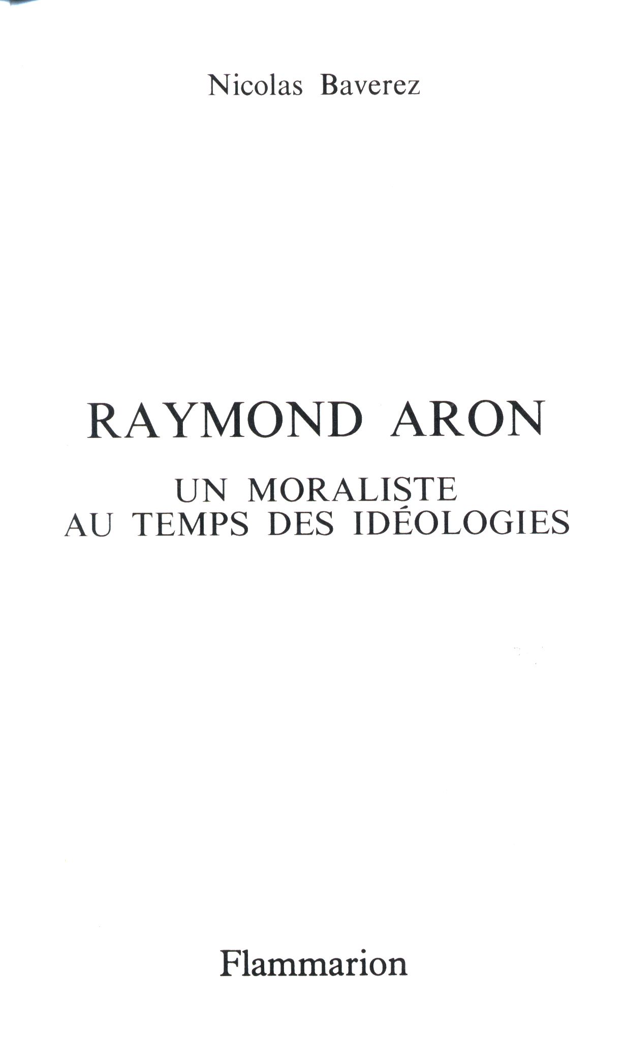 Title information Raymond Aron : un moraliste au temps des idéologies / Nicolas Baverez Personal name Baverez, Nicolas, 1961- (Author) Další autoři Flammarion (nakladatelství) (Publisher) Imprimerie Maury SA (tiskárna) (Printer) Publication [Paris] : Flammarion, [1995] Manufacture Imprimerie Maury SA Scope 541 stran ; 18 cm ISBN 2-08-081332-3 (brožováno) Edition Champs ; 332