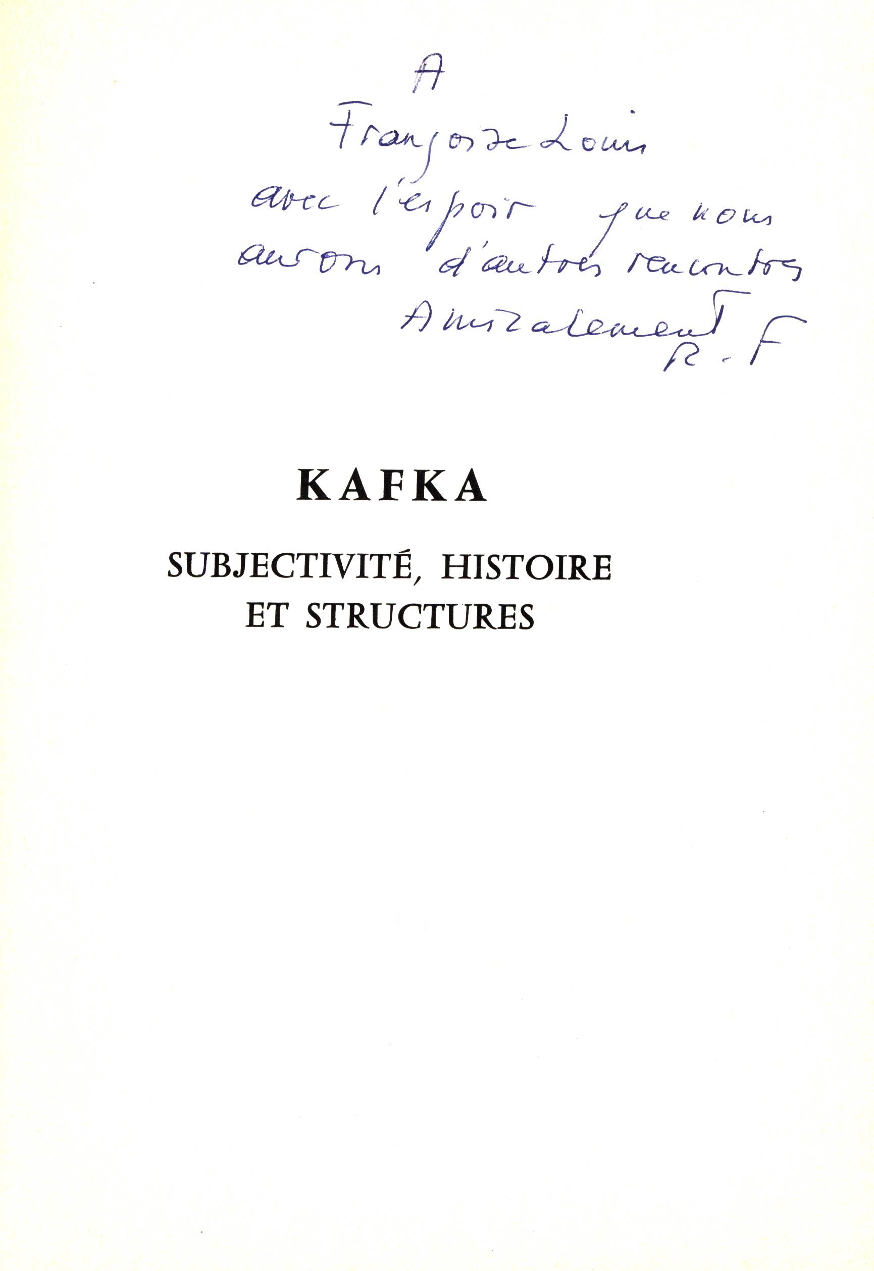 Názvové údaje Kafka : subjectivité, histoire et structures / Rose-Marie Ferenczi Osobní jméno Ferenczi, Rose-Marie, 1923-2010 (Autor) Další autoři Klincksieck (firma) (Nakladatel, vydavatel) Nakladatel Paris : Éditions Klincksieck, 1975 Výrobce Saverdun : Les Presses de I.C.M. Rozsah 216 stran : ilustrace, grafy ; 22 cm ISBN (Brožováno) Edice Critères ; 5