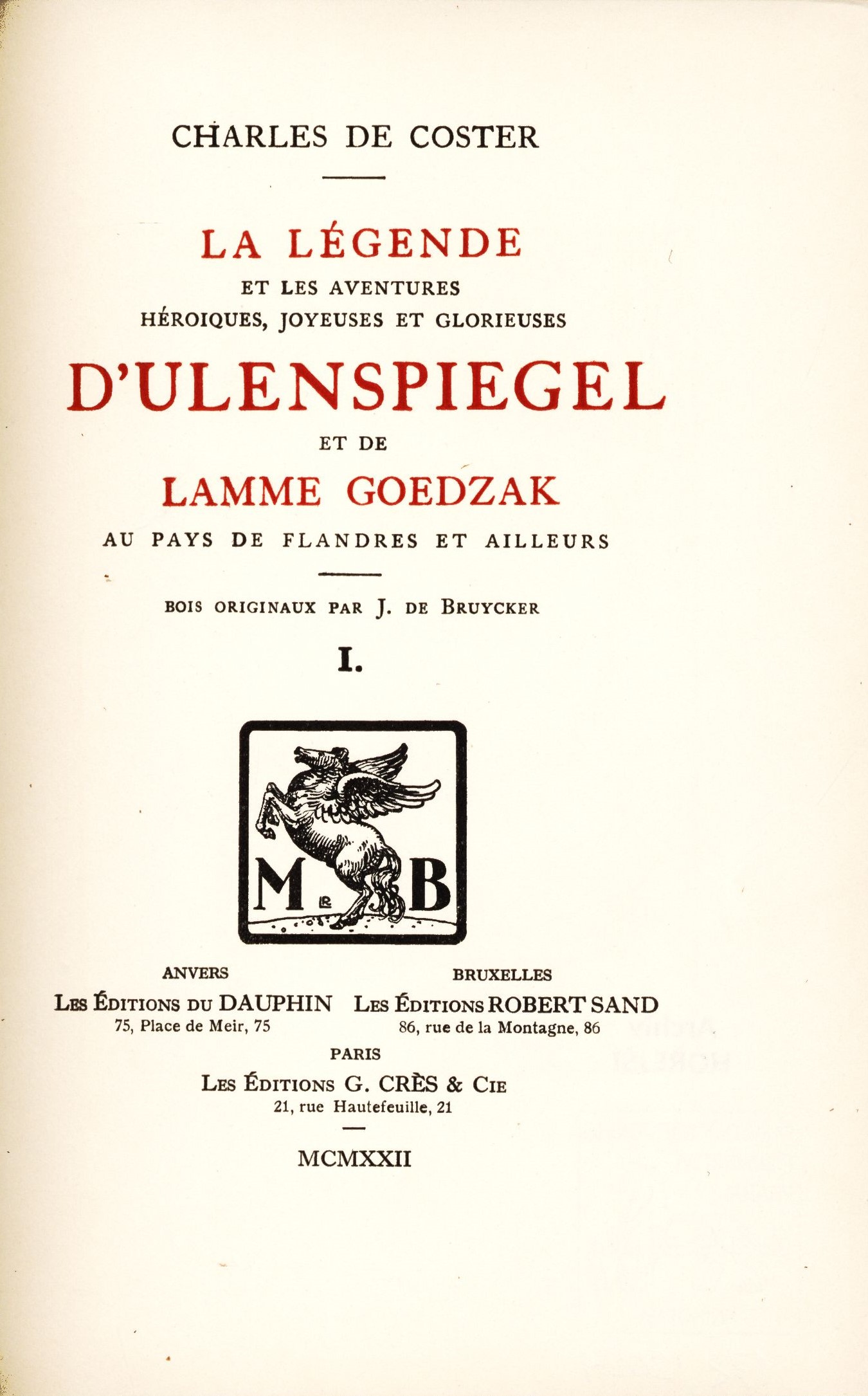 La legende et les aventures heroiques, joyeuses et glorieuses d'Ulenspiegel et de Lamme Goedzak au pays de Flandres et ailleurs