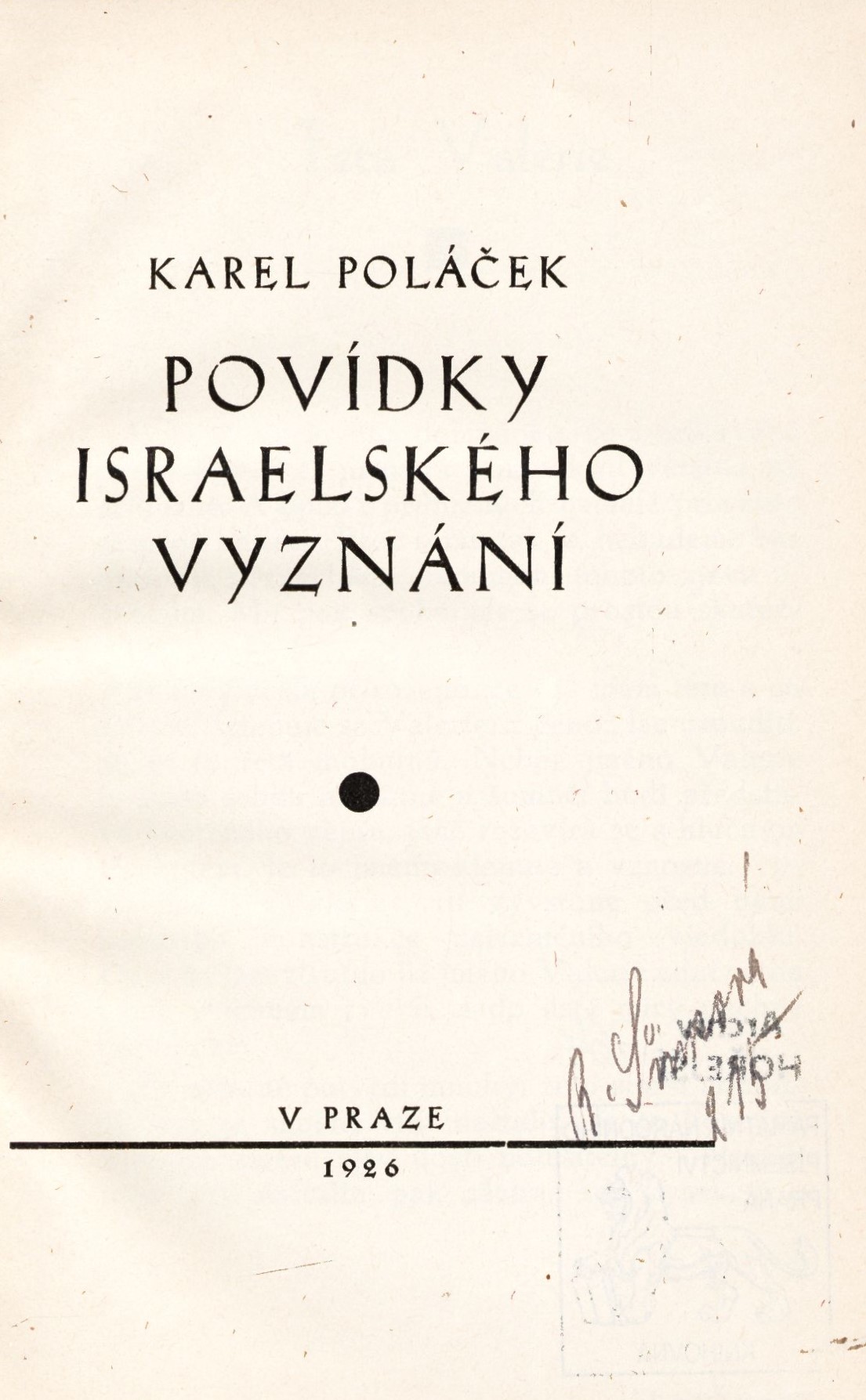Title information Povídky israelského vyznání / Karel Poláček Personal name Poláček, Karel, 1892-1945 (Author) Další autoři Pokrok (nakladatelství) (Publisher) Pokrok (knihtiskárna, Praha) (Printer) Publication V Praze : Pokrok, 1926 Scope 76 stran ; 17 cm ISBN (vázáno) Edition Dobrá četba (Pokrok) svazek čís. 11.