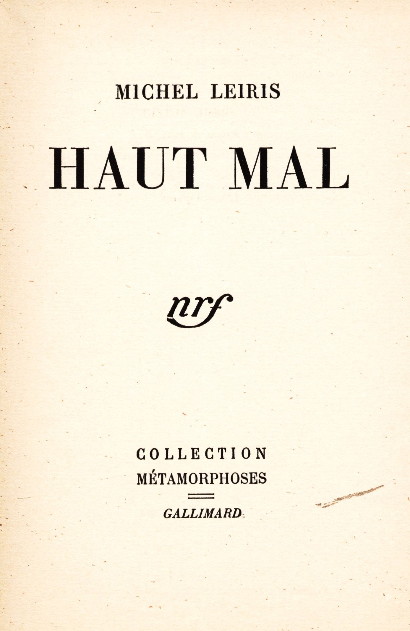 1. Title informationHaut Mal / Michel Leiris