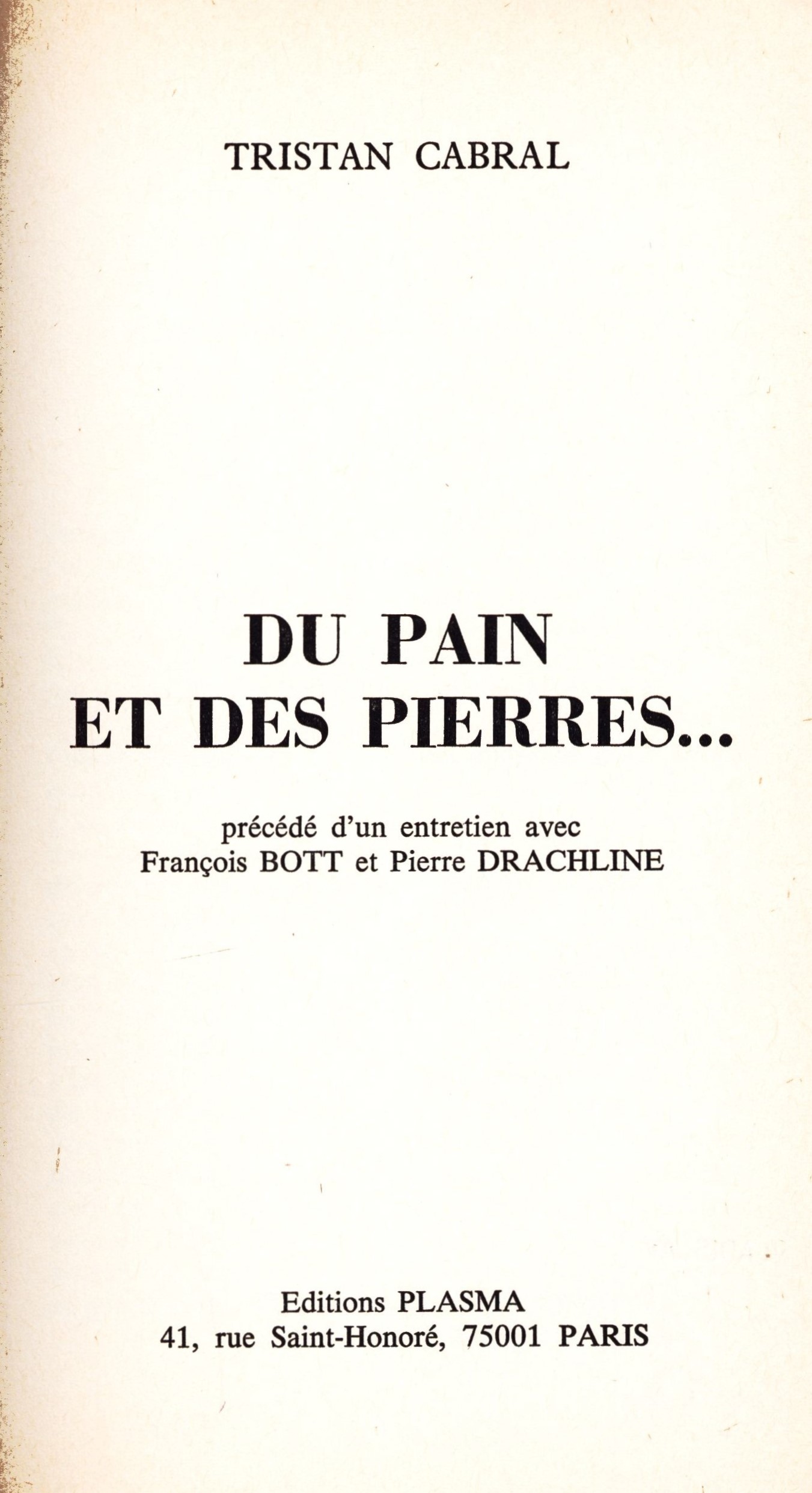 1. Title informationDu pain et des pierres... : précédé d'un entretien avec François Bott et Pierre Drachline / Tristan Carbal