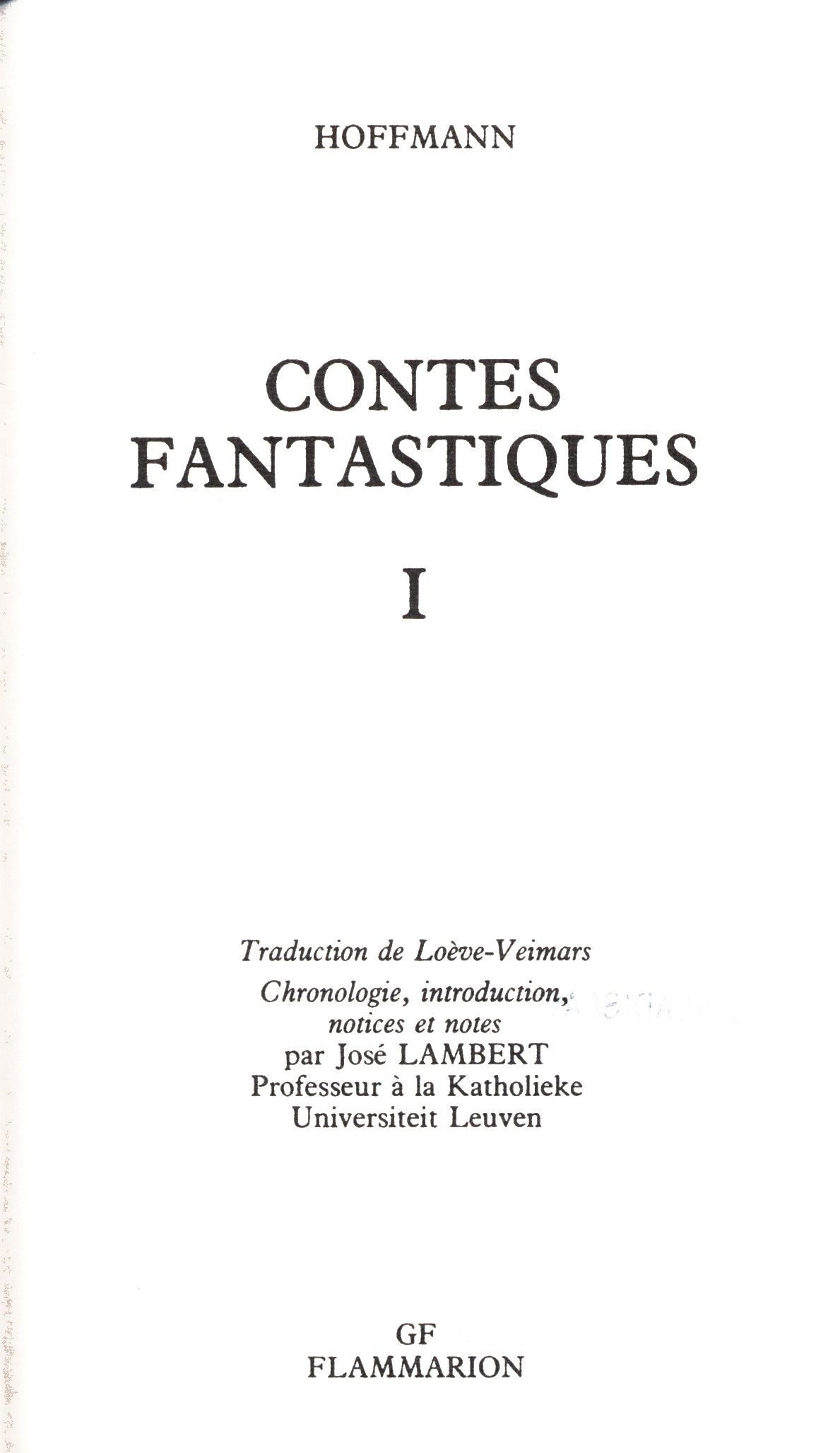 Title information Contes fantastiques. I / Traduction de Loève-Veimars ; Chronologie, introduction, notices et notes par José Lambert Personal name Hoffmann, E. T. A., 1776-1822 (Author) Další autoři Lambert, José, 1941- (Commentator for written text) (Author of introduction) Loève-Veimars, A. (Translator) (Adolphe), baron, 1801-1854 Corporation Flammarion (nakladatelství) (Publisher) Bussière (firma) (Printer) Publication [Paris] : Flammarion, 1979 Manufacture St. Amand : Imp. Bussière Scope 314 stran ; 18 cm ISBN 2-08-070330-7 (brožováno) Edition GF-Flammarion ; n° 330