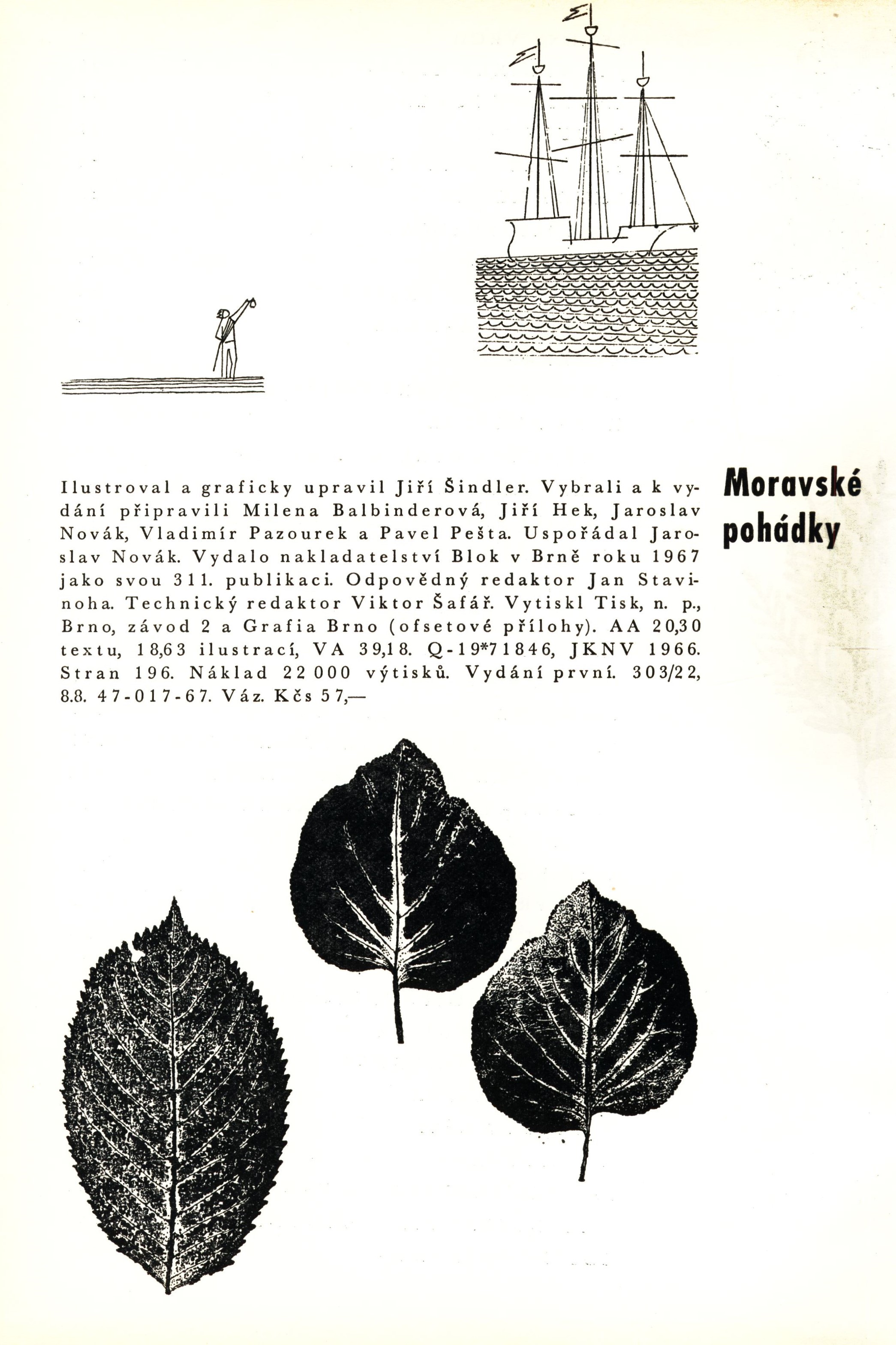 Title information Moravské pohádky / uspořádal Jaroslav Novák ; ilustroval a graficky upravil Jiří Šindler Personal name Novák, Jaroslav, 1914-1984 (Compiler) (Editor) Další autoři Šindler, Jiří, 1922-2015 (Illustrator) (Book designer) Balbinderová, Milena (Compiler) (Editor) Hek, Jiří, 1932-1998 (Compiler) (Editor) Pazourek, Vladimír, 1907-1987 (Editor) (Compiler) Pešta, Pavel, 1933-2002 (Editor) (Compiler) Vladislav, Jan, 1923-2009 (Dedicatee) Corporation Blok (nakladatelství) (Publisher) Tisk Brno (tiskárna) (Printer) Grafia (tiskárna) (Printer) Edition statement Vydání první Publication Brno : Blok, 1967 Manufacture Tisk, n. p., Grafia Brno Scope 189 stran, [20] stran barevné obrazové přílohy : ilustrace ; 28 cm ISBN (vázáno) Country Czech Republic Language Czech Note Barevná zdobená obálka. - Zdobené předsádky. - Zdobený frontispis. - Černobílý titulní list. - Černobílé ilustrace. - Barevná obrazová příloha. - Ediční poznámka. - Obsah. - Tiráž.