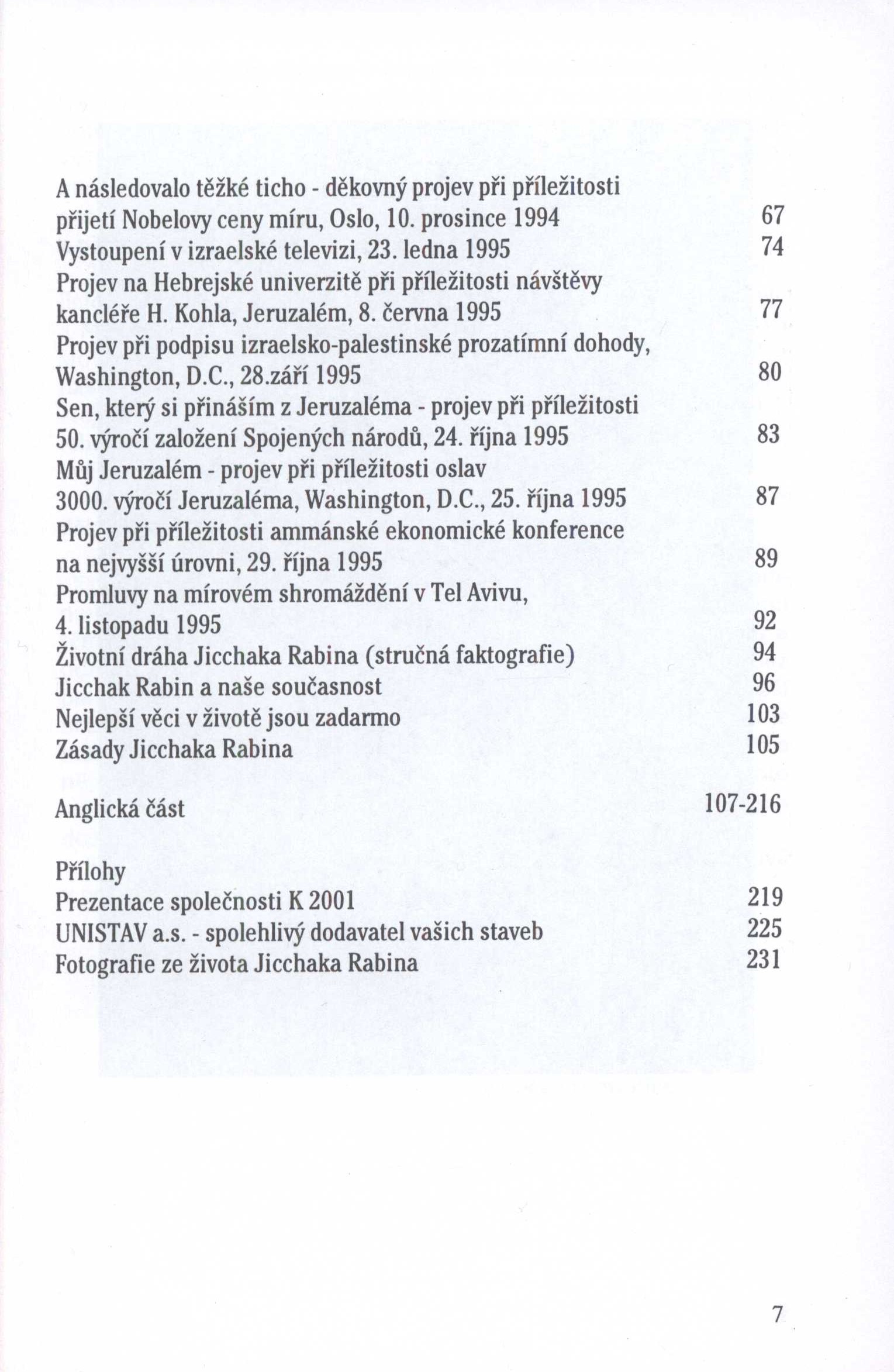 Title information Jicchak Rabin a naše současnost = Yitzhak Rabin in our times / autoři projektu Arnošt Lustig a Miroslav Kouba ; fotografie ČTK, Petra Růžičková, archiv autorů ; návrh obálky Sabina Kratochvilová ; editor Miroslav Kouba Personal name Rabin, Jicchak, 1922-1995 (Author) Další autoři Lustig, Arnošt, 1926-2011 (Author of introduction) Kouba, Miroslav, 1979- (Editor) Růžičková, Petra, 1963-2021 (Photographer) Kratochvilová, Sabina, 1959- (Bookjacket designer) Corporation Česká tisková kancelář (Photographer) David & Shoel (nakladatelství) (Publisher) Tiskárny Havlíčkův Brod (firma) (Printer) Publication [Praha] : David & Shoel, 2000 Manufacture Tiskárny Havlíčkův Brod, a.s. Scope 224 stran, 8 nečíslovaných stran obrazových příloh ; ilustrace, portréty ; 20,5 cm ISBN 80-254-0257-6 (v knize neuvedeno ; brožováno) : neprodejné Country Czech Republic Language Czech * English Language of the original Czech Note Zdobená barevná obálka. - Obsah. - Úvodní slovo (E. Hadar). - Pár osobních poznámek úvodem (A. Lustig). - Černobílé celostránkové fotografické portréty. - Životopisná data. - Černobílé fotografie s popiskami v obrazové příloze. - Neprodejný výtisk.