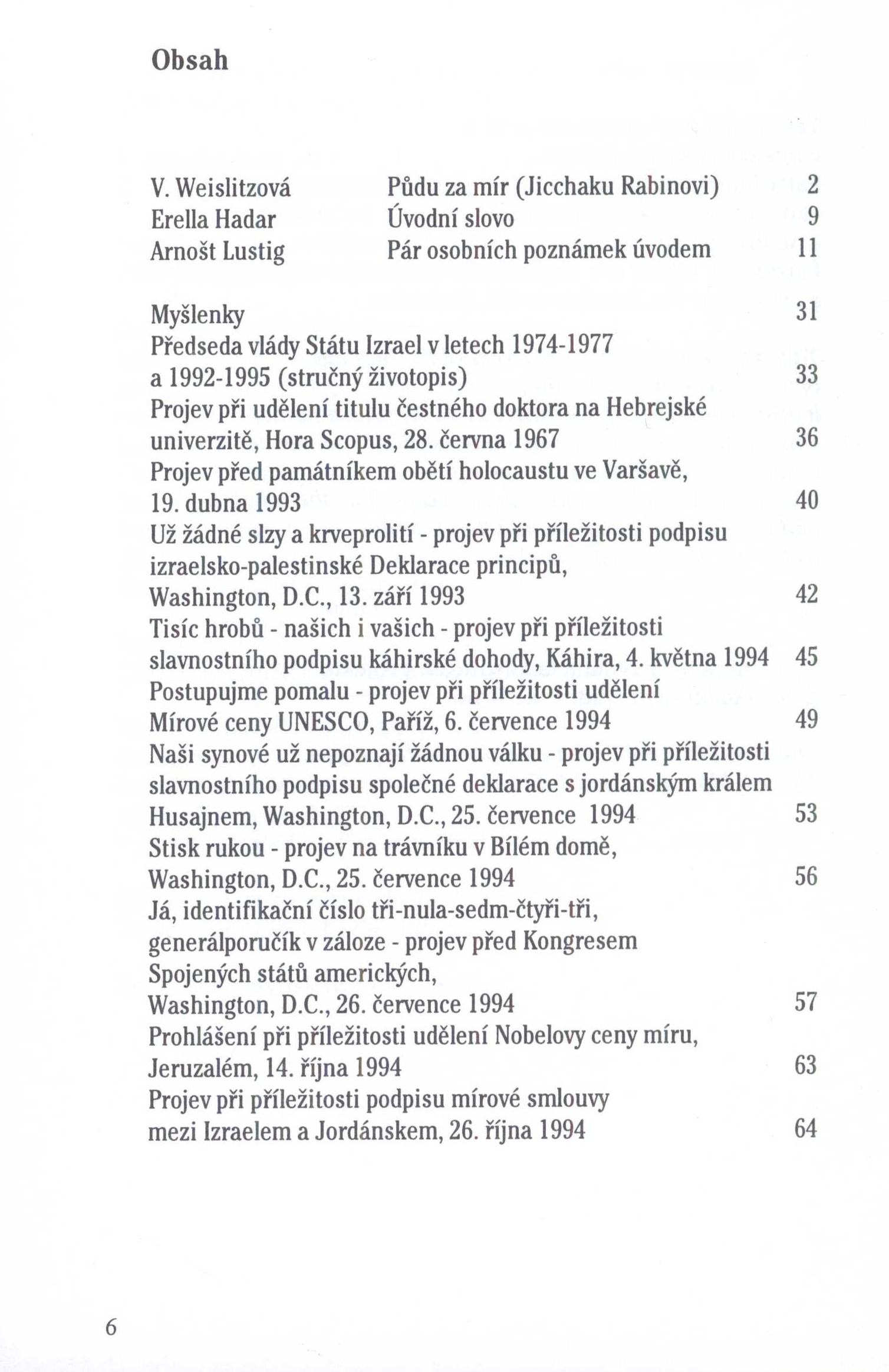 Language note Souběžný anglický text. Document kind monografie Personal subjects Rabin, Jicchak, 1922-1995 - izraelský politik, diplomat a voják Keywords politici * předsedové vlády * politika a vláda * Izrael * stol. 20. * projevy * medailony * sborníky UDC 32-051 * 328.131 * 929 * 328/329 * (569.4) * (042.5) * (0:82-94) * (082) Uživatelské pole PNP Sign. LITb 2373: Dar Eva Lustigová. Call number Track No. Location Info LITb 02373 1682/2024 Sbírka