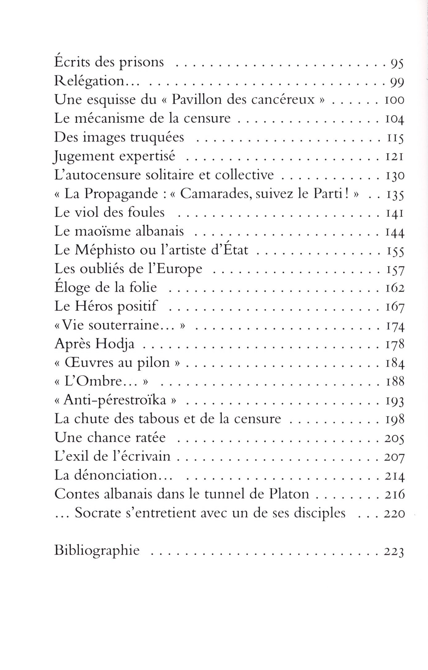 Title information Le long chemin sous le tunnel de Platon : le destin de l'artiste sous la censure en Albanie (1945-1990) / Luan Rama Personal name Rama, Luan, 1952- (Author) Další autoři Éditions du Petit Véhicule (Publisher) Publication Nantes : Éditions du Petit Véhicule, 1999 Manufacture ImPress Scope 225 stran, 16 stran nečíslované obrazové přílohy : černobílé ilustrace ; 21 cm ISBN 2-84273-157-3 (brožováno) Country France Language French Note Barevná zdobená obálka. - Černobílý titulní list. - Nečíslovaná, černobílá, obrazová příloha. - Obsah.