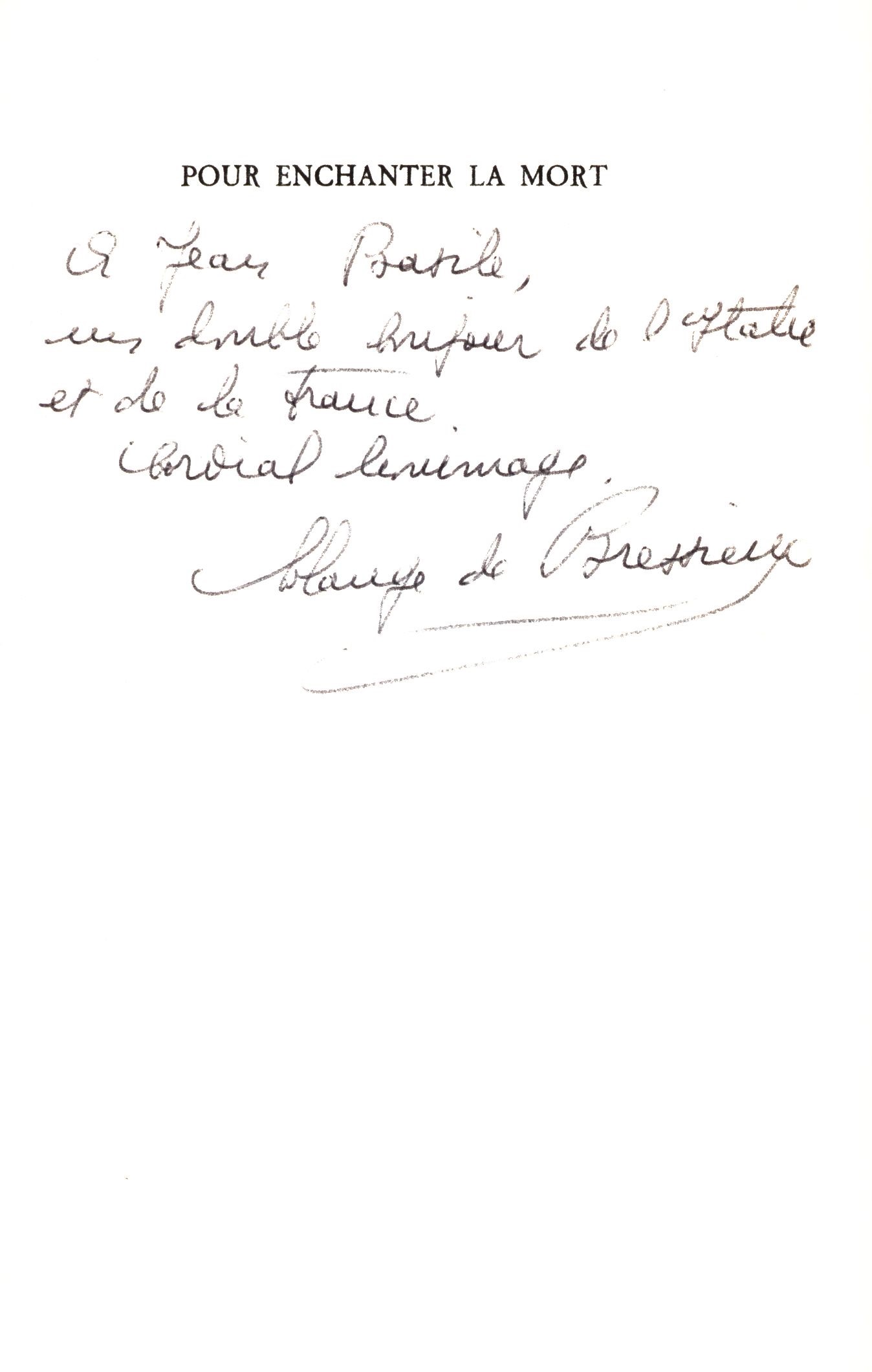 Title information Pour enchanter la mort / Aldo Capasso ; Traduit de l'italien par Solange de Bressieux Personal name Capasso, Aldo, 1909-1997 (Author) Další autoři Bressieux, Solange de, 1908-1997 (Translator) (Dedicator) Corporation Éditions Seghers (Publisher) Publication Paris : Seghers, 1965 Scope 81 stran ; 19 cm ISBN (vázáno) Edition Autour du monde ; 82