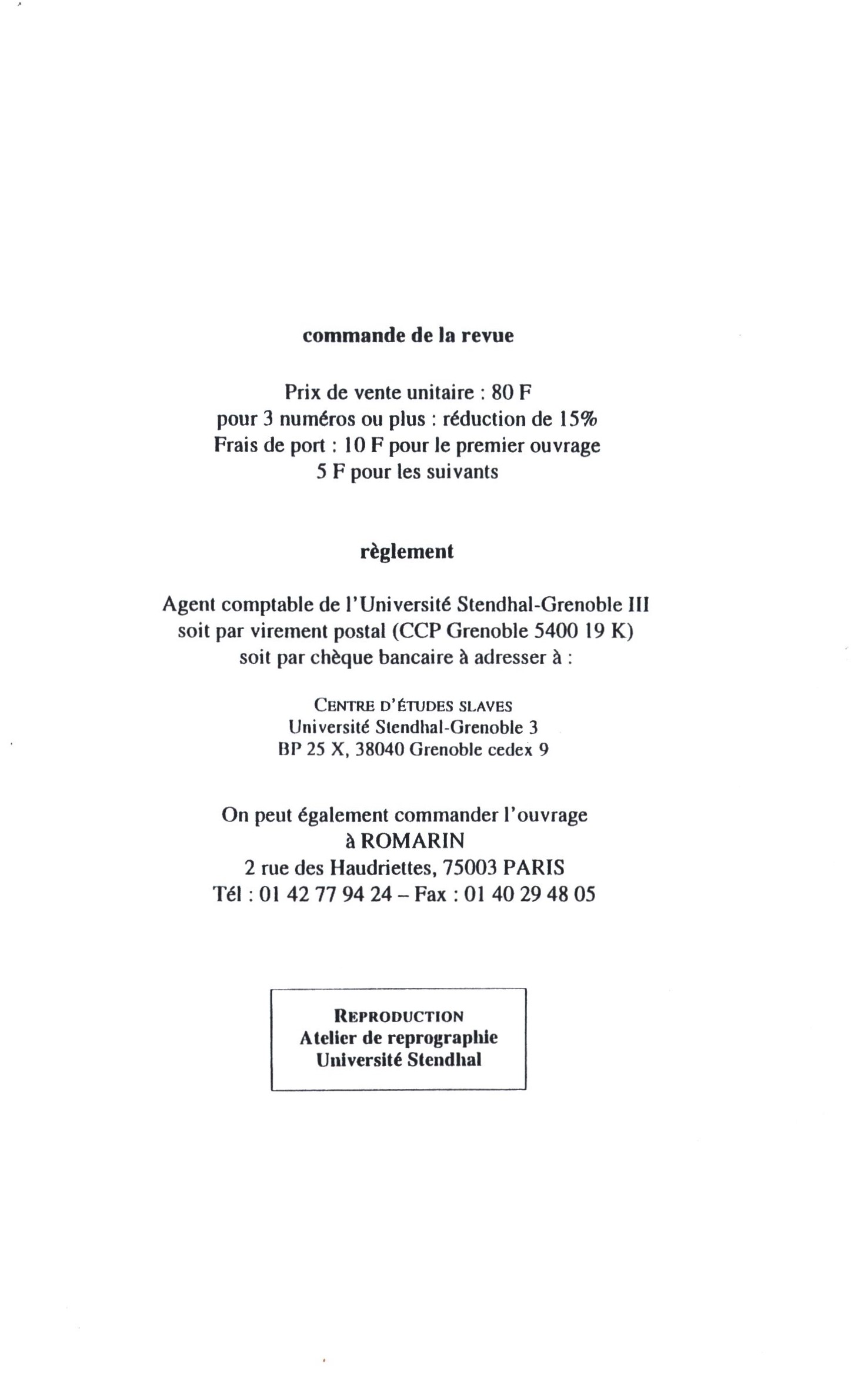 PublicationGrenoble : Centre d’études slaves contemporaines, 2000