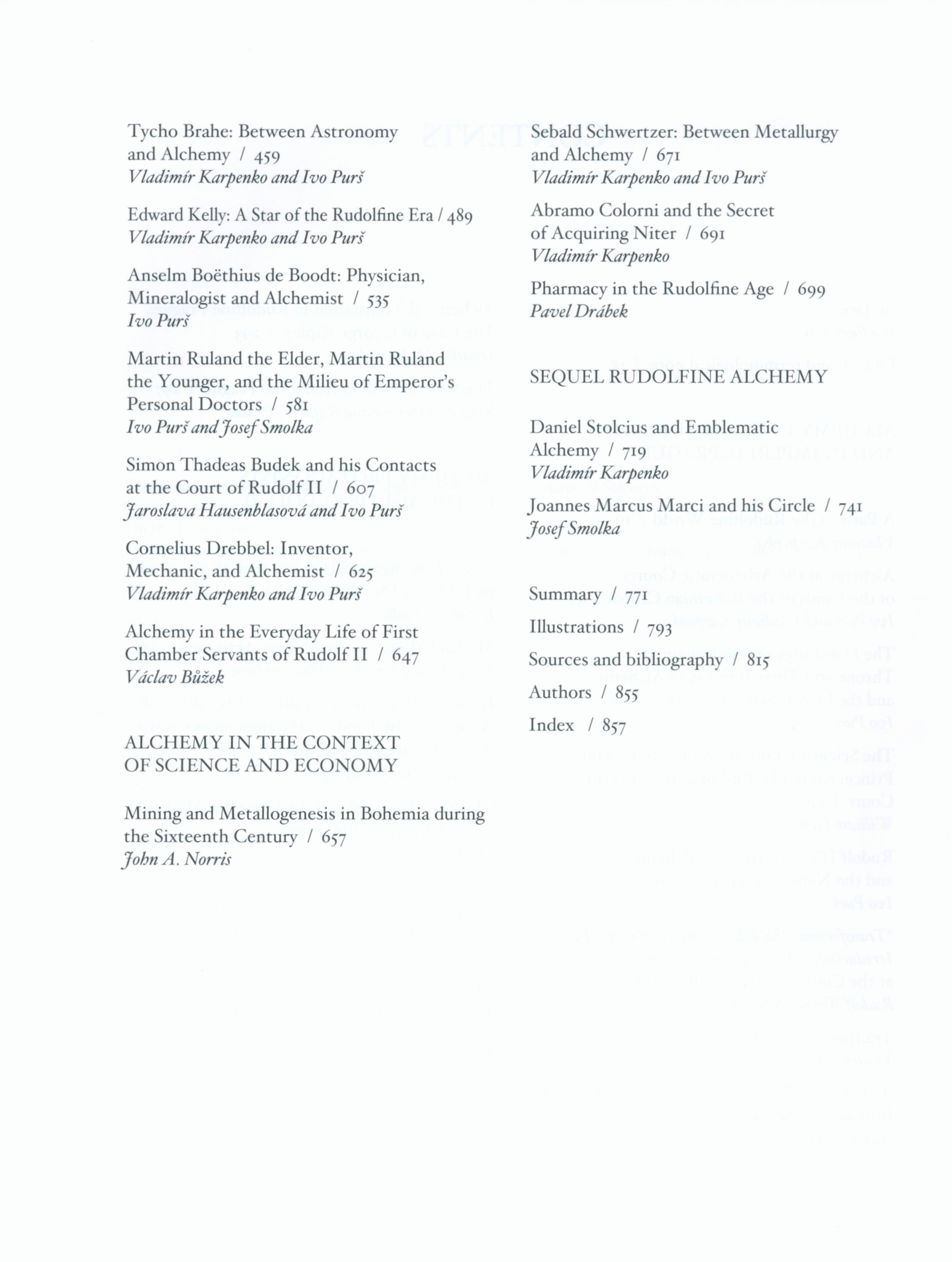 Title information Alchemy and Rudolf II : exploring the secrets of nature in Central Europe in the 16th and 17th centuries / editors Ivo Purš and Vladimír Karpenko ; graphic revision, typesetting and cover: Jakub Effenberger and Ivo Purš Další autoři Purš, Ivo, 1964- (Editor) (Book designer) (Bookjacket designer) (Compositor) (Author of introduction) Karpenko, Vladimír, 1942- (Editor) Effenberger, Jakub, 1964- (Book designer) (Bookjacket designer) (Compositor) Corporation Ústav dějin umění (Akademie věd ČR) (Publisher) Artefactum, nakladatelství Ústavu dějin umění Akademie věd České republiky (Publisher) Tiskárny Havlíčkův Brod (firma) (Printer) Edition statement 2nd edition, Ist English edition Publication Prague : Artefactum, 2016 Manufacture Havlíčkův Brod : Tiskárny Havlíčkův Brod, a.s. Scope 869 stran : ilustrace (některé barevné), portréty, noty, faksimile, 1 genealogická tabulka ; 27 cm ISBN 978-80-86890-85-2 (Artefactum ; vázáno) Country Czech Republic Language English Language of the original Czech Note Anglická mutace. - Vazba s barevnou reprodukcí obrazu, bílý text (i na hřbetu). - Obsah. - Barevný portrét Rudolfa II. - Předmluva I. Purš. - Ediční a terminologická poznámka. - Texty. - Černobílé a barevné ilustrace, reprodukce, úortréty, fotografie, faksimile s popisky. - Seznam vyobrazení. - Text editorů a recnze knihy na zadní straně vazby.