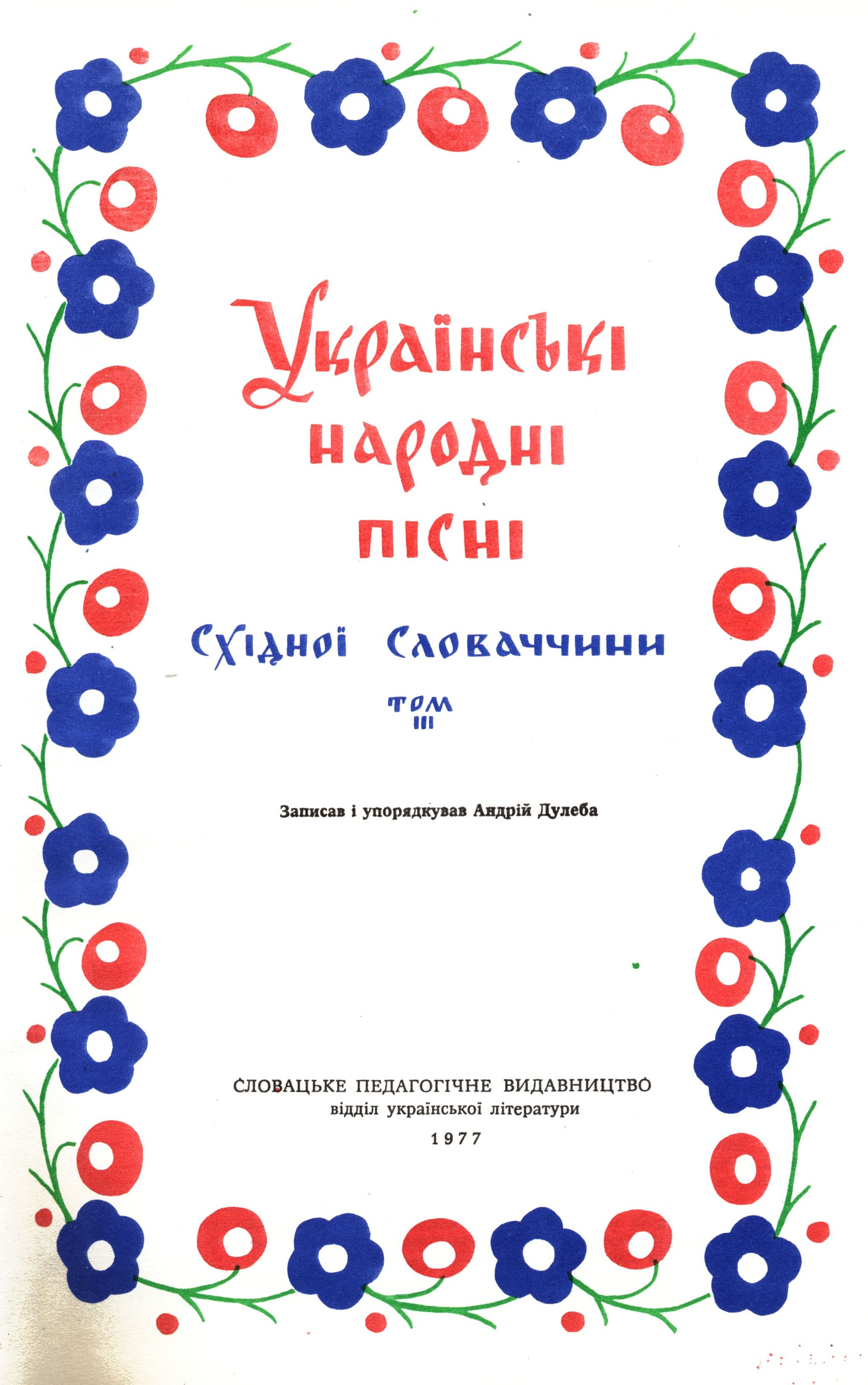 Ukrajins‘kì narodnì pìsnì schìdnoji Slovaččyny